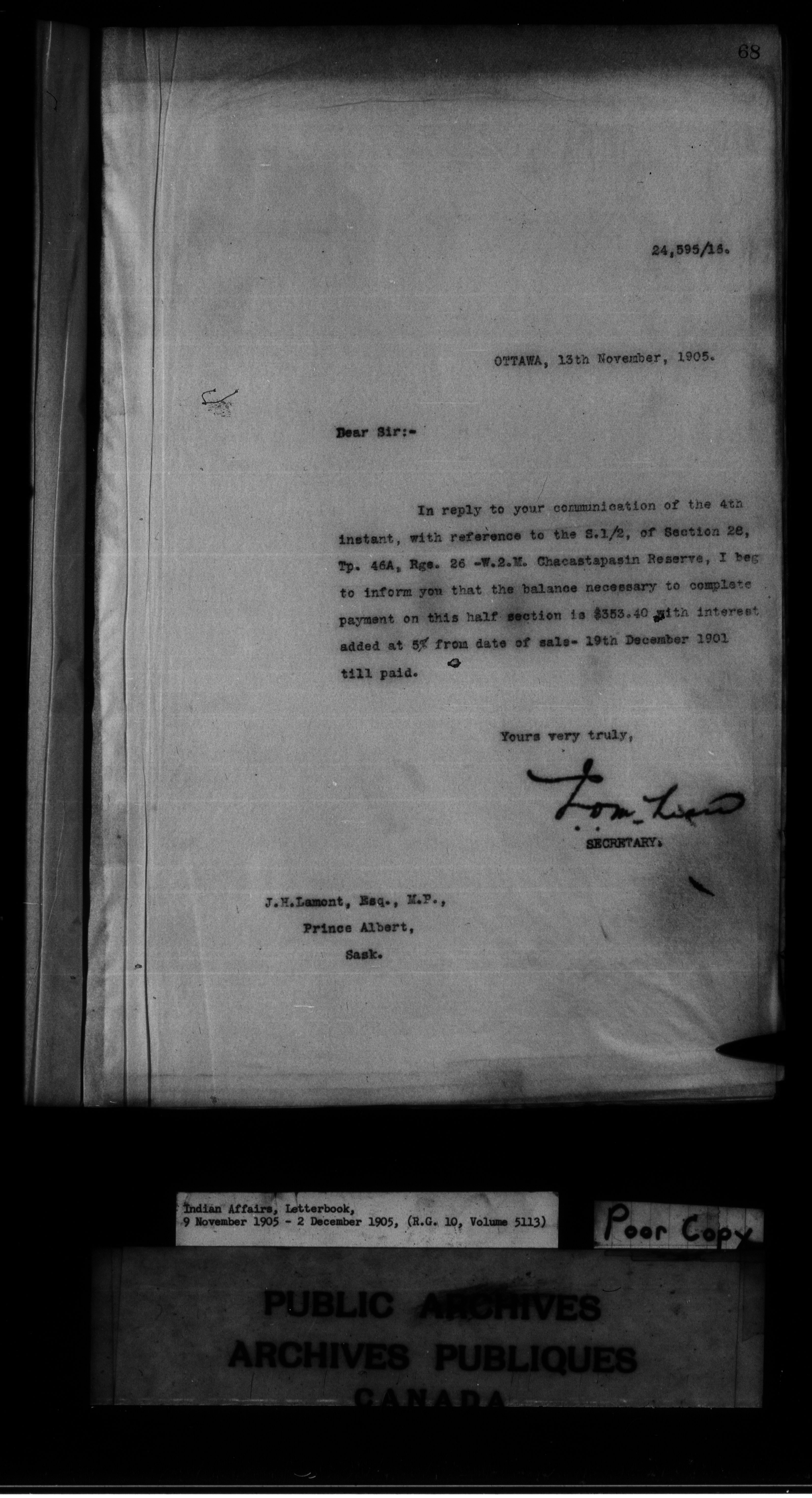 Department of Indian Affairs : Letterbooks of out-going correspondence relating to the administration of Indian Affairs in both eastern and western Canada, 1871-1920 - 8604