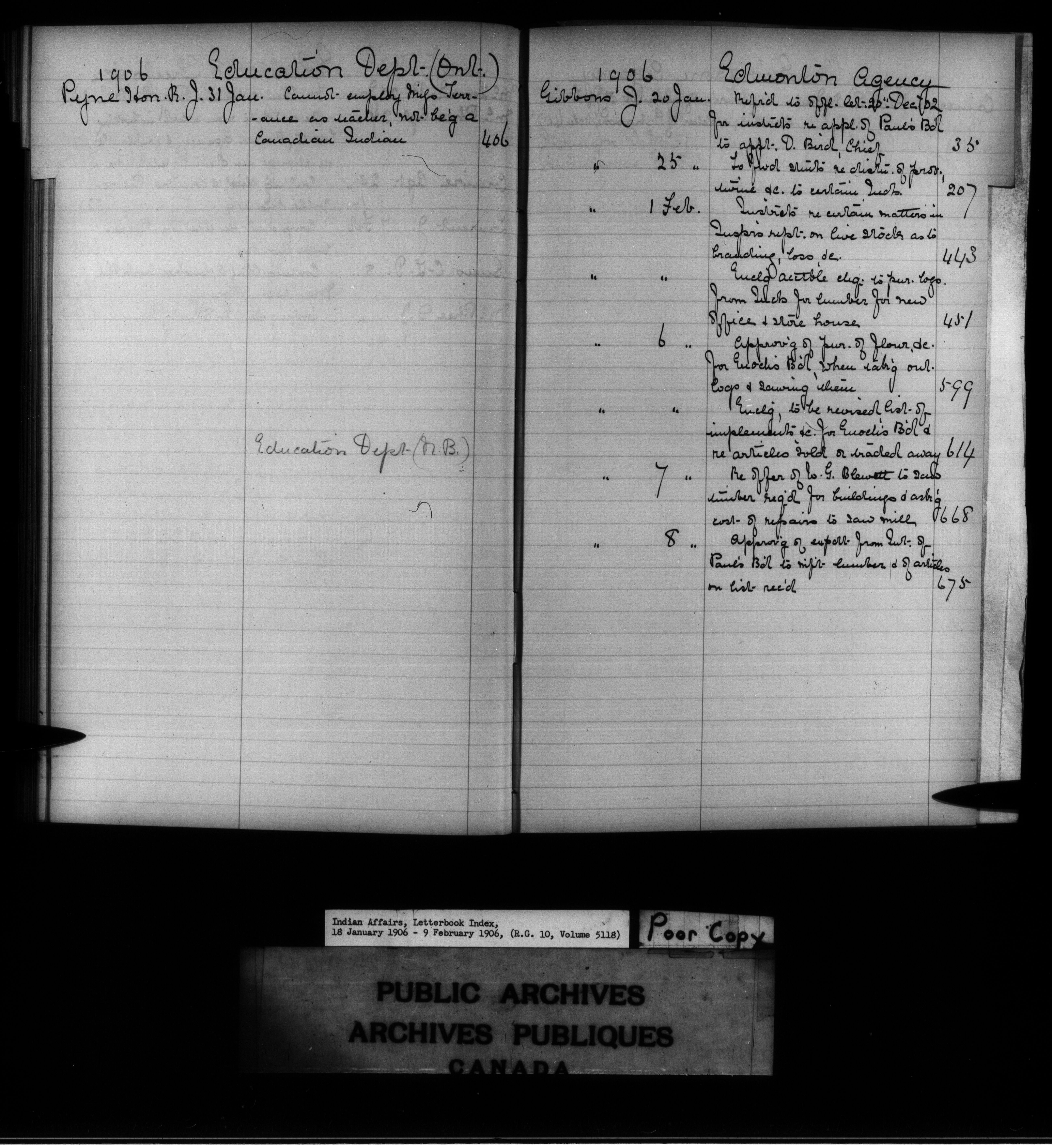 Department of Indian Affairs : Letterbooks of out-going correspondence relating to the administration of Indian Affairs in both eastern and western Canada, 1871-1920 - 8605