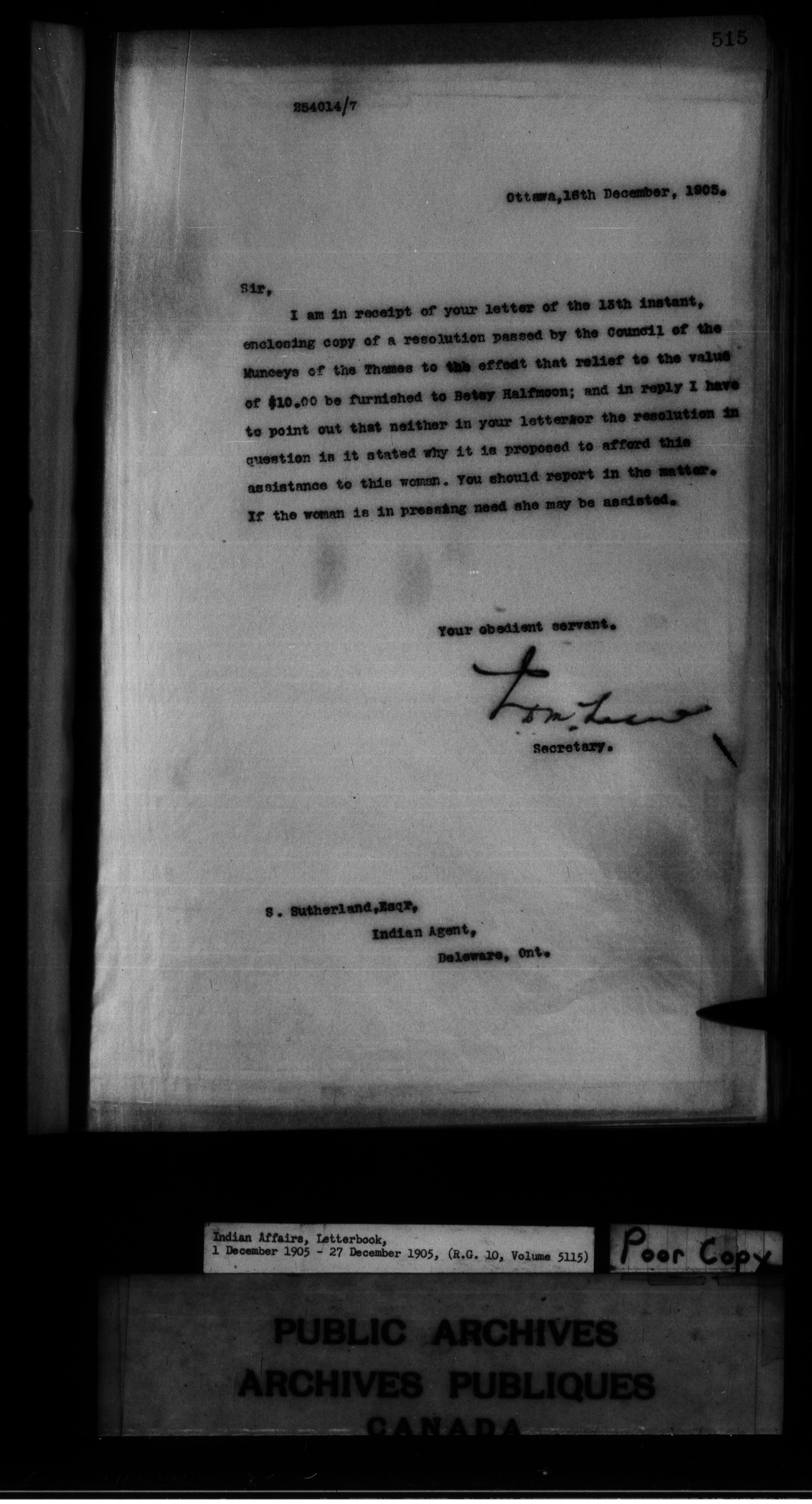 Department of Indian Affairs : Letterbooks of out-going correspondence relating to the administration of Indian Affairs in both eastern and western Canada, 1871-1920 - 8605