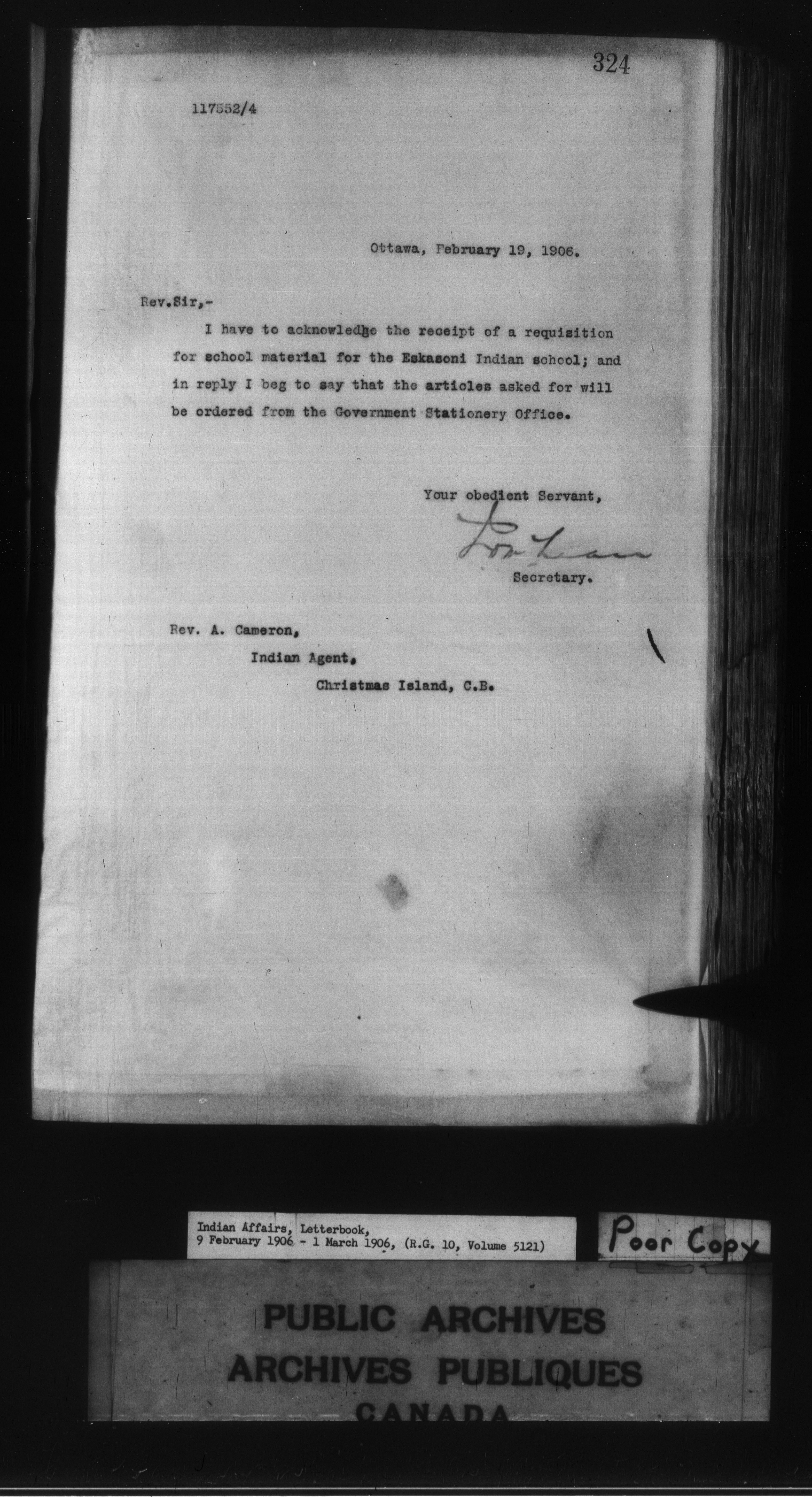 Department of Indian Affairs : Departmental letterbooks : C-8607