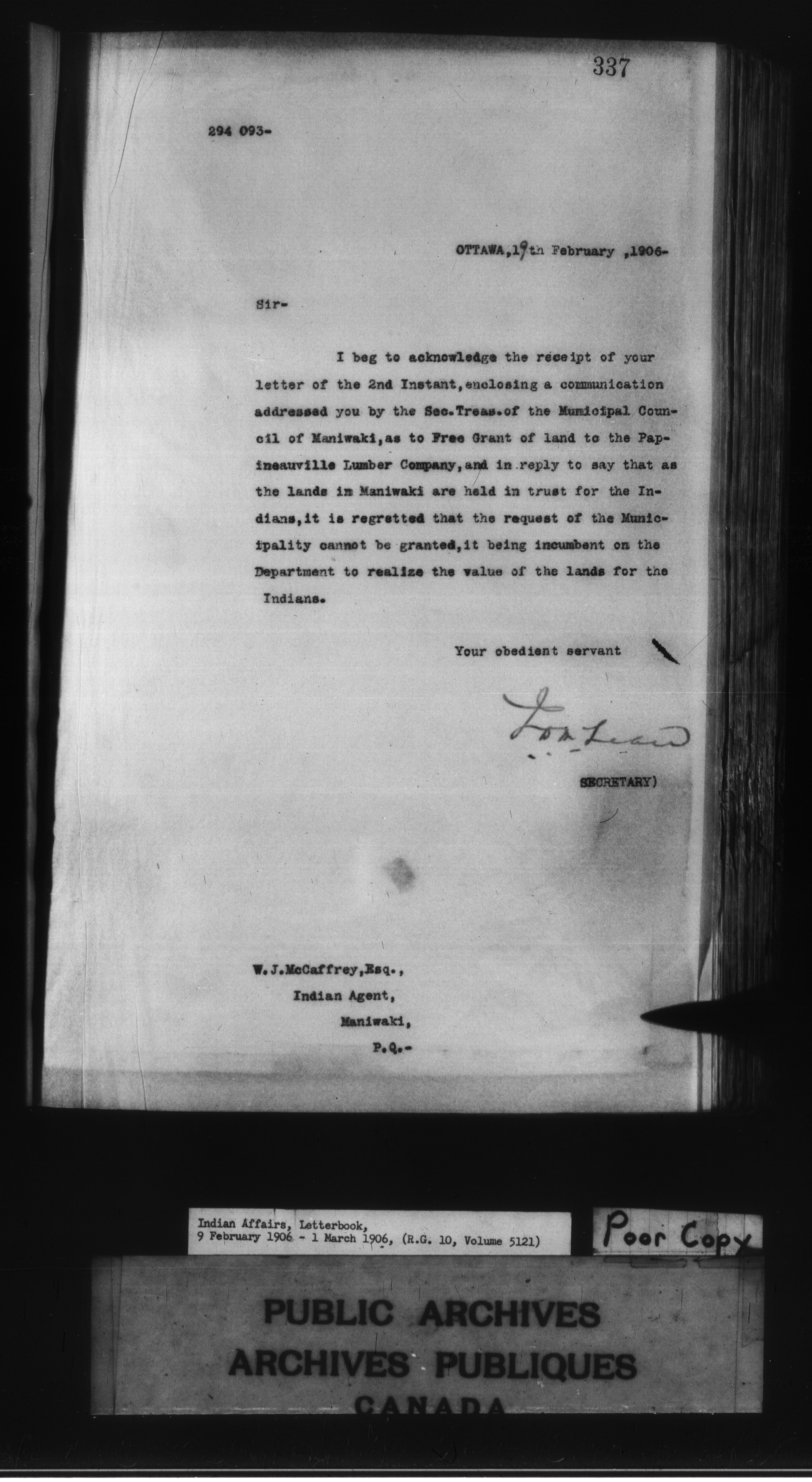 Department of Indian Affairs : Departmental letterbooks : C-8607