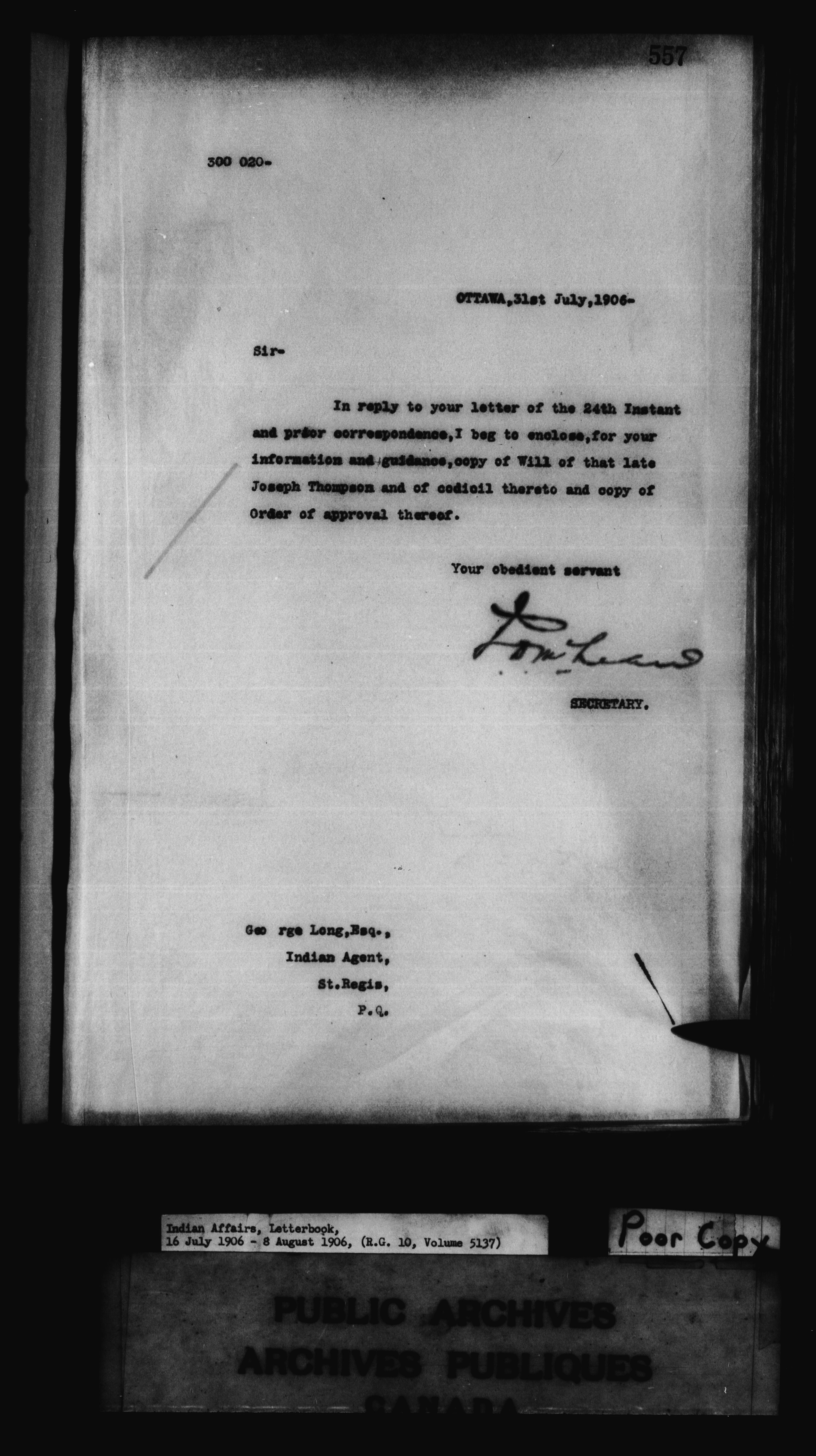 Department of Indian Affairs : Letterbooks of out-going correspondence relating to the administration of Indian Affairs in both eastern and western Canada, 1871-1920 - 8612