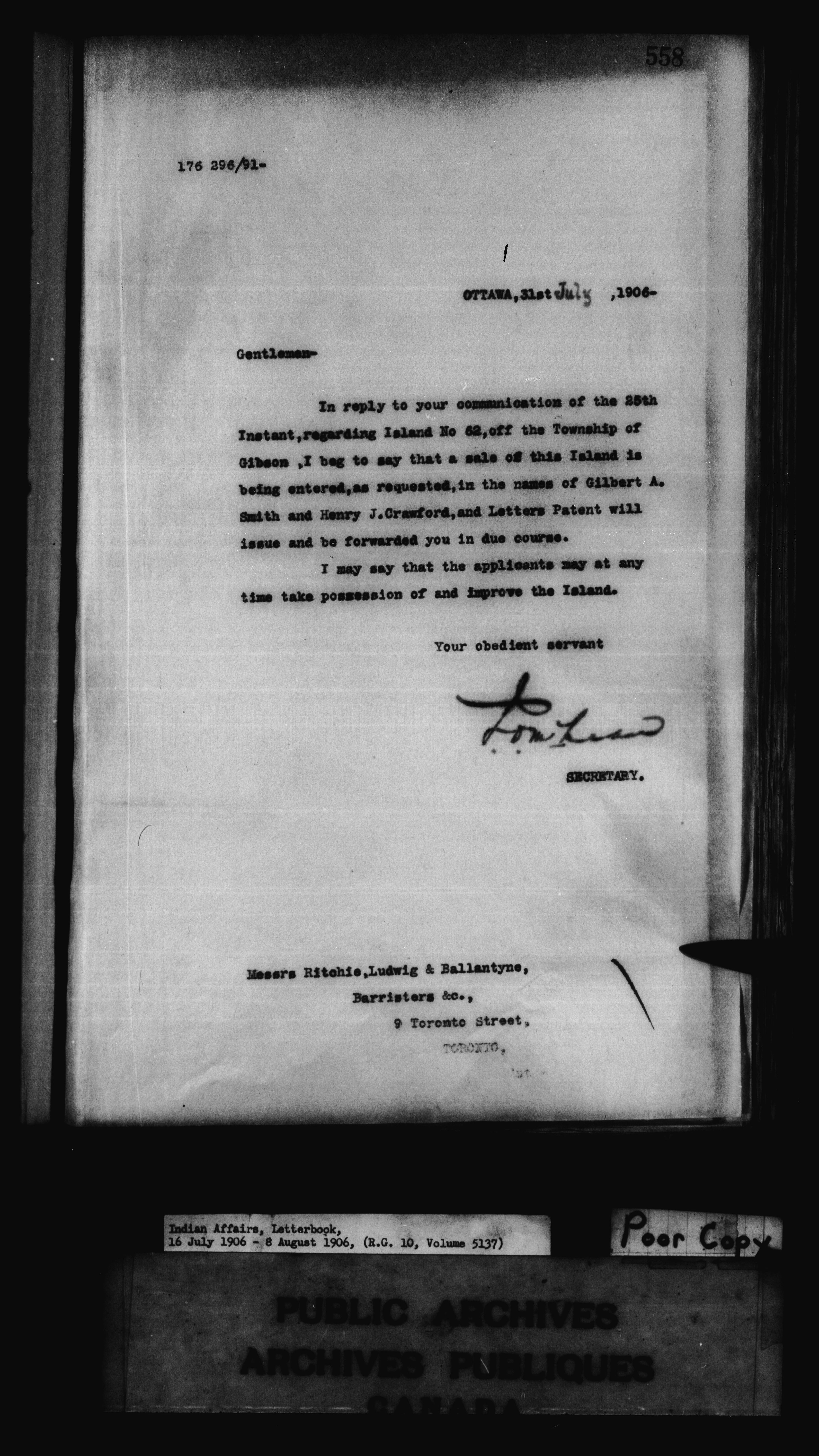 Department of Indian Affairs : Letterbooks of out-going correspondence relating to the administration of Indian Affairs in both eastern and western Canada, 1871-1920 - 8612