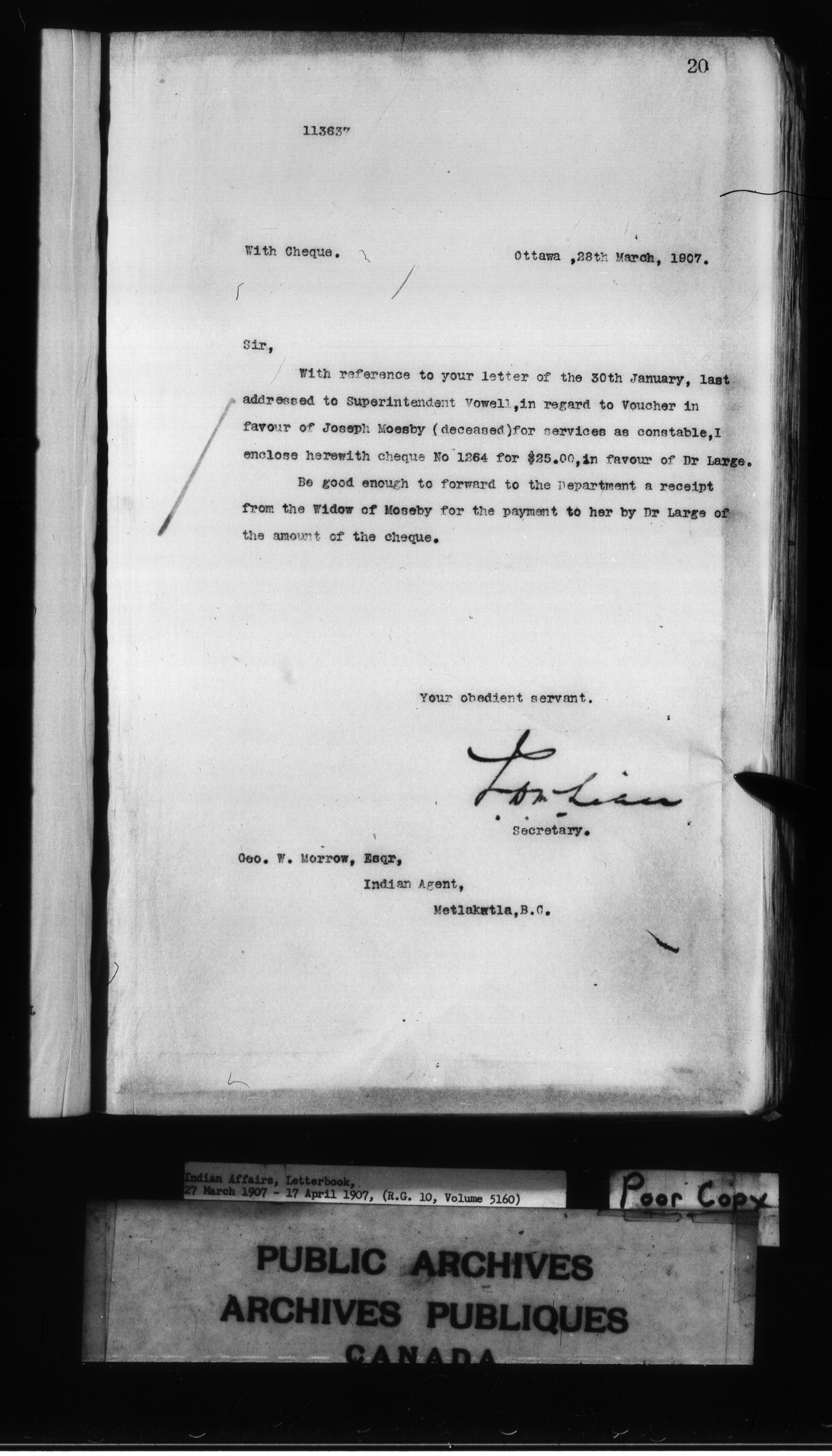 Department of Indian Affairs : Letterbooks of out-going correspondence relating to the administration of Indian Affairs in both eastern and western Canada, 1871-1920 - 8620