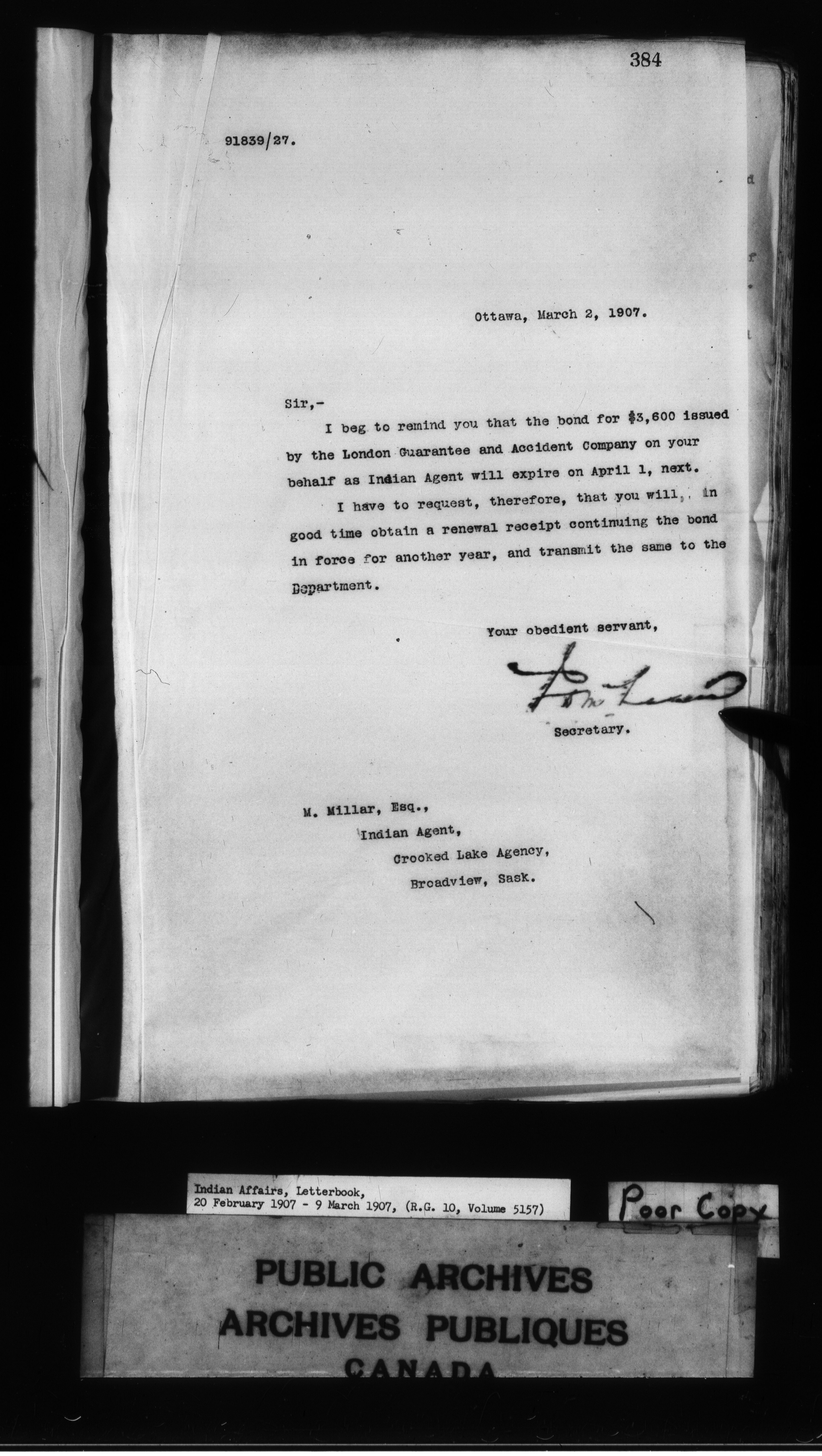 Department of Indian Affairs : Letterbooks of out-going correspondence relating to the administration of Indian Affairs in both eastern and western Canada, 1871-1920 - 8620