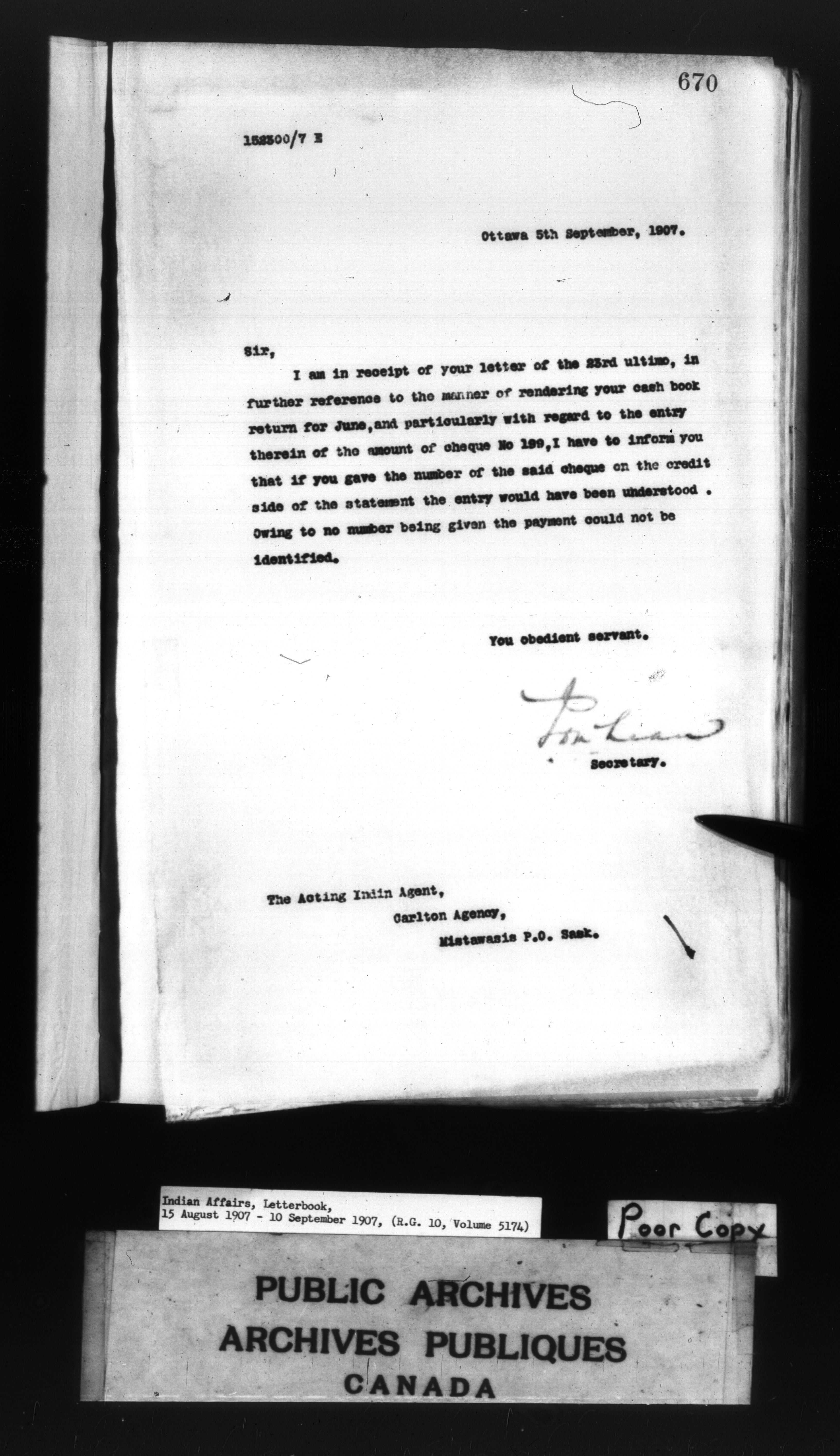 Department of Indian Affairs : Letterbooks of out-going correspondence relating to the administration of Indian Affairs in both eastern and western Canada, 1871-1920 - 8625