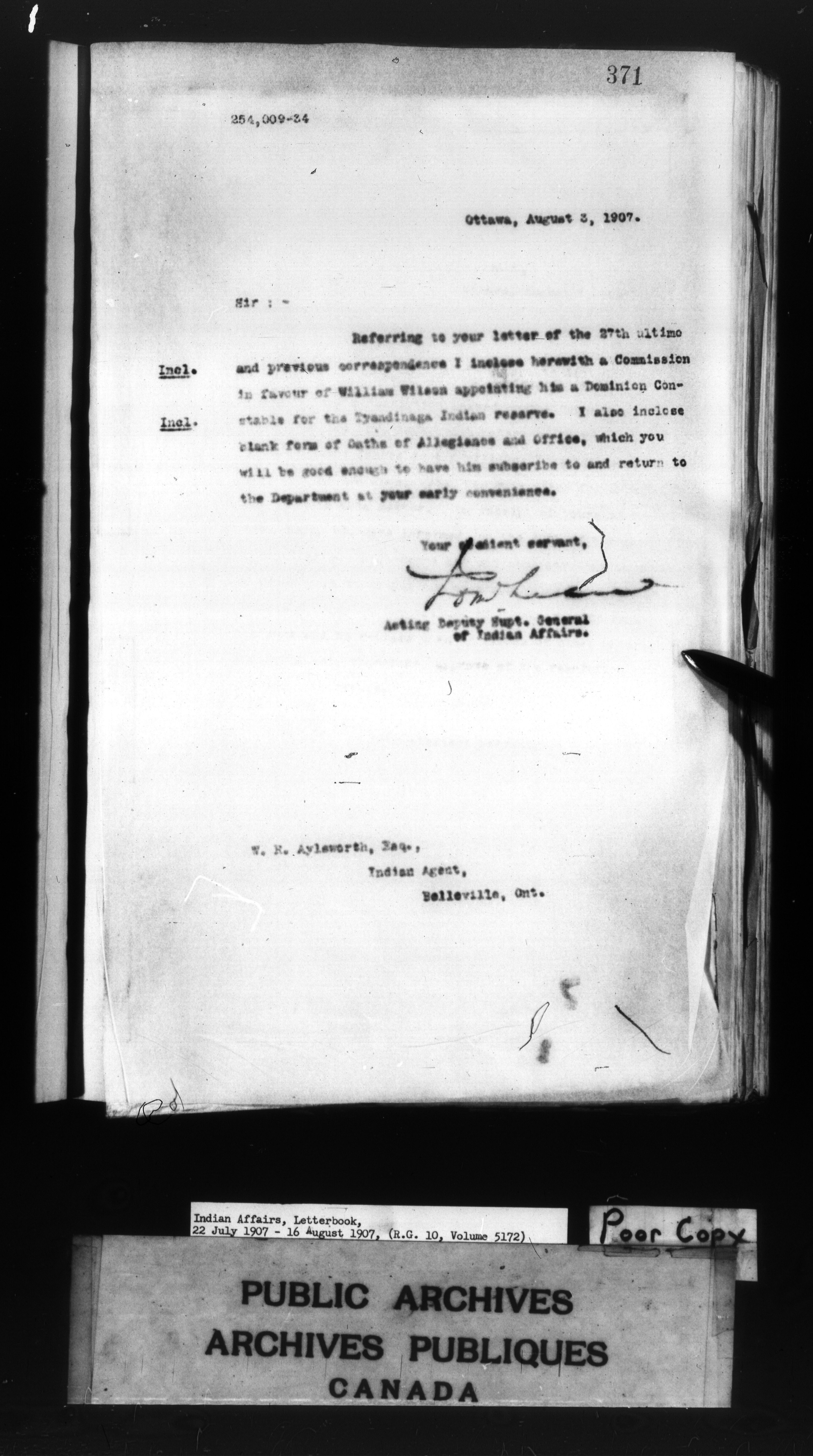 Department of Indian Affairs : Letterbooks of out-going correspondence relating to the administration of Indian Affairs in both eastern and western Canada, 1871-1920 - 8625