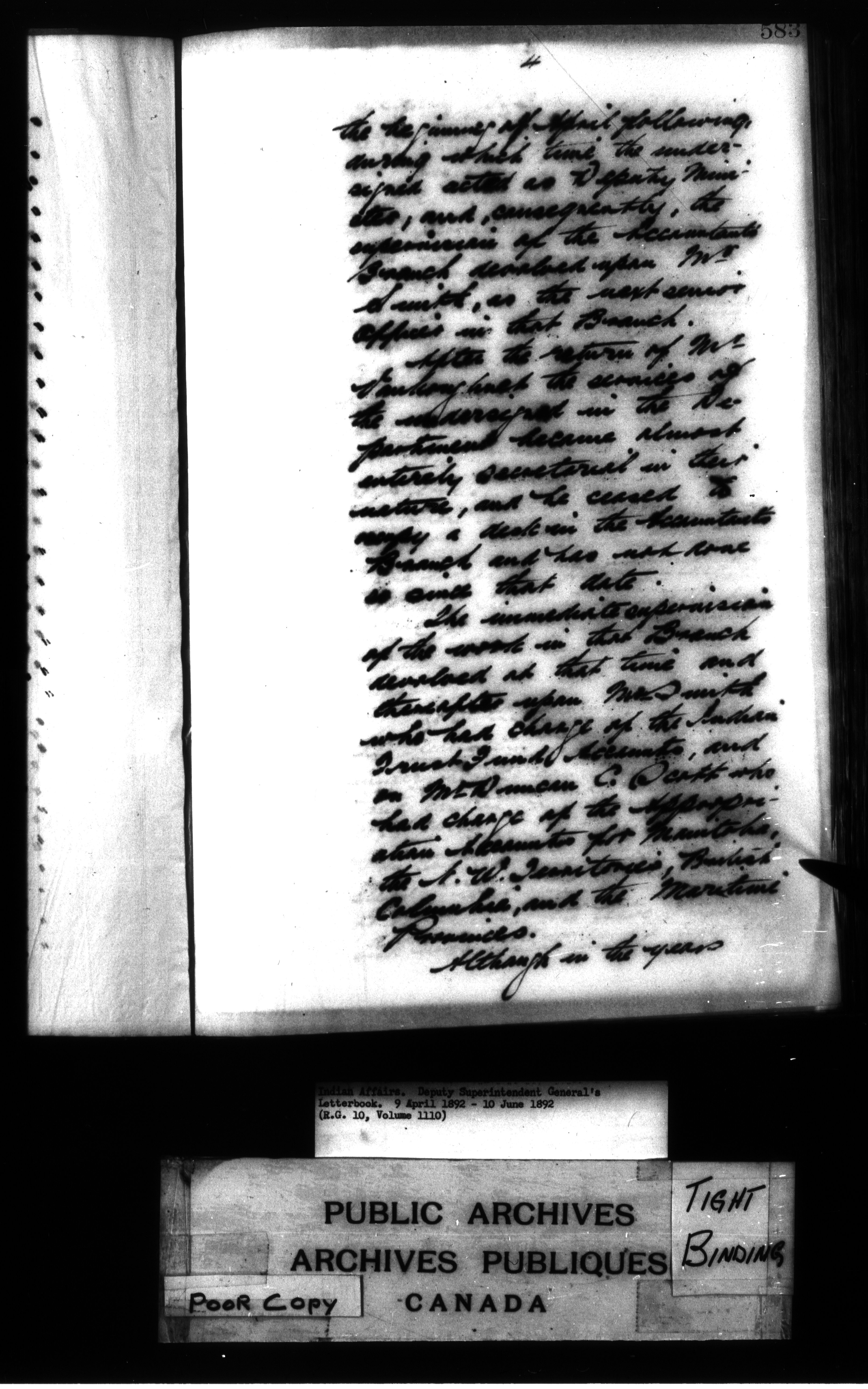 Office of the Deputy Superintendent General of Indian Affairs : letterbooks, 1862-1924 : C-8632