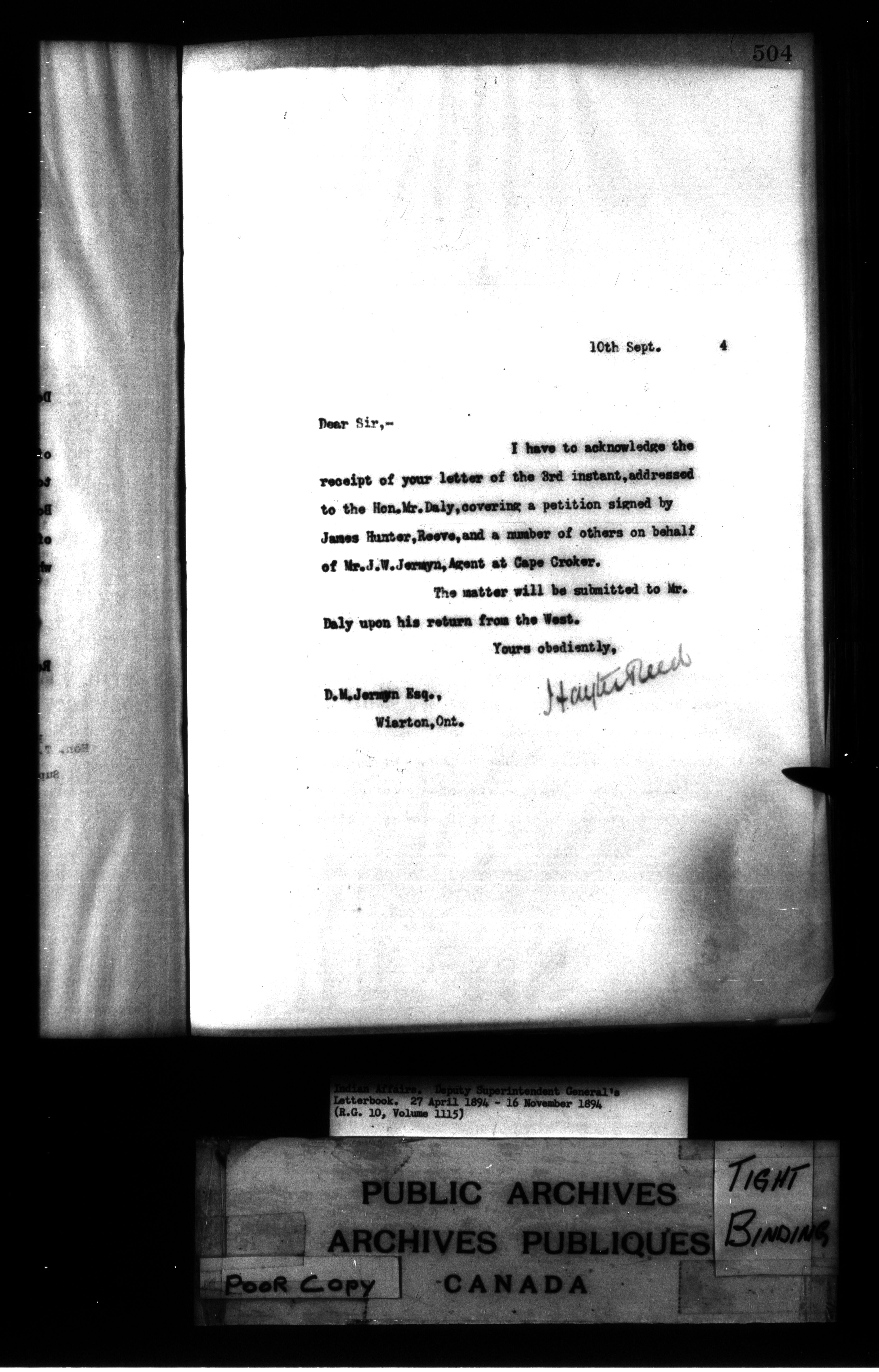 Office of the Deputy Superintendent General of Indian Affairs : letterbooks, 1862-1924 : C-8635