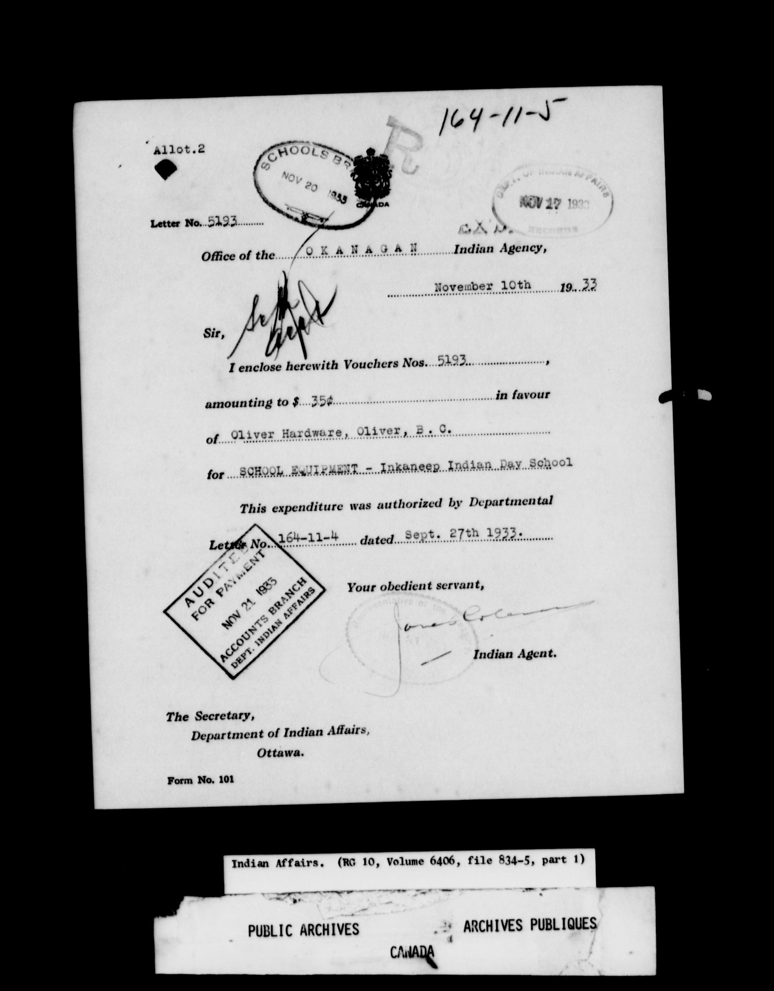 Department of Indian Affairs: School files series - 8744