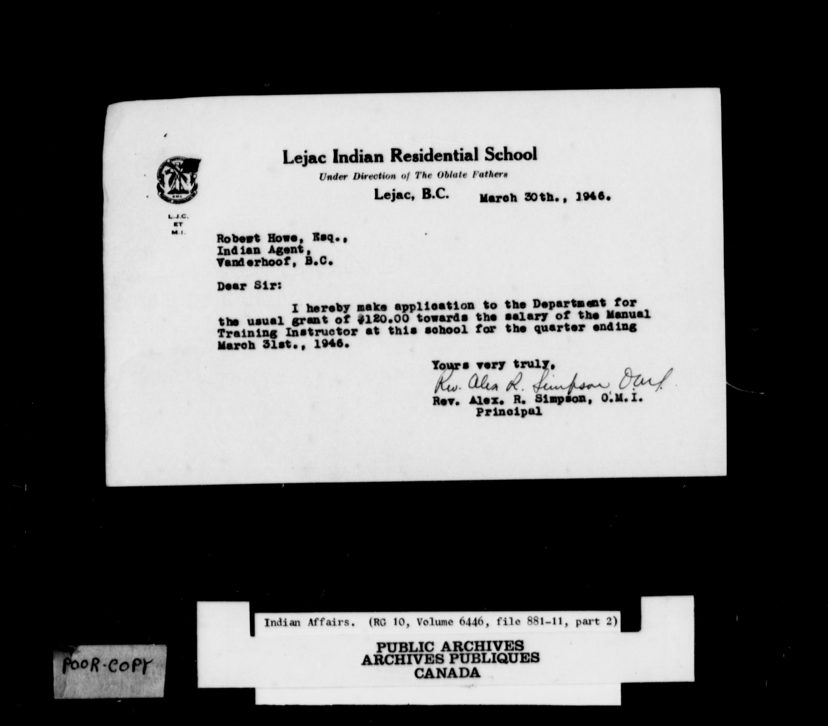 Department of Indian Affairs : School files series : C-8769