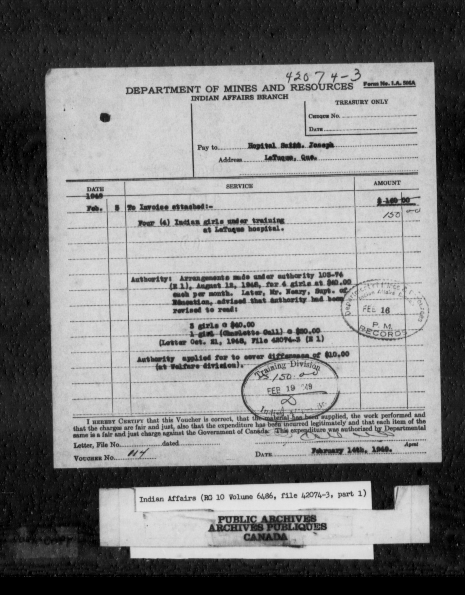 Department of Indian Affairs : School files series - C-8799