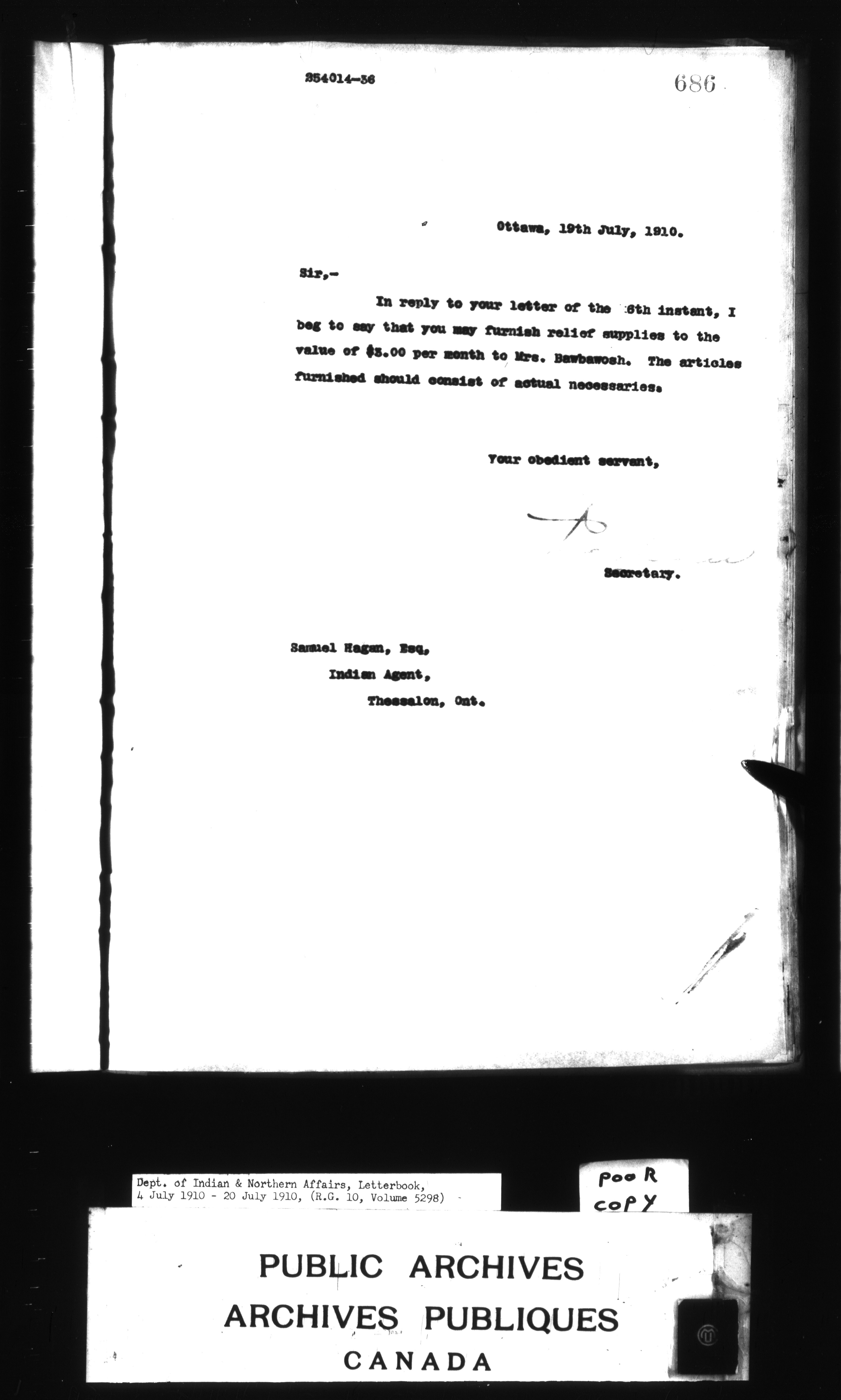 Department of Indian Affairs : Letterbooks of out-going correspondence relating to the administration of Indian Affairs in both eastern and western Canada, 1871-1920 - 8805