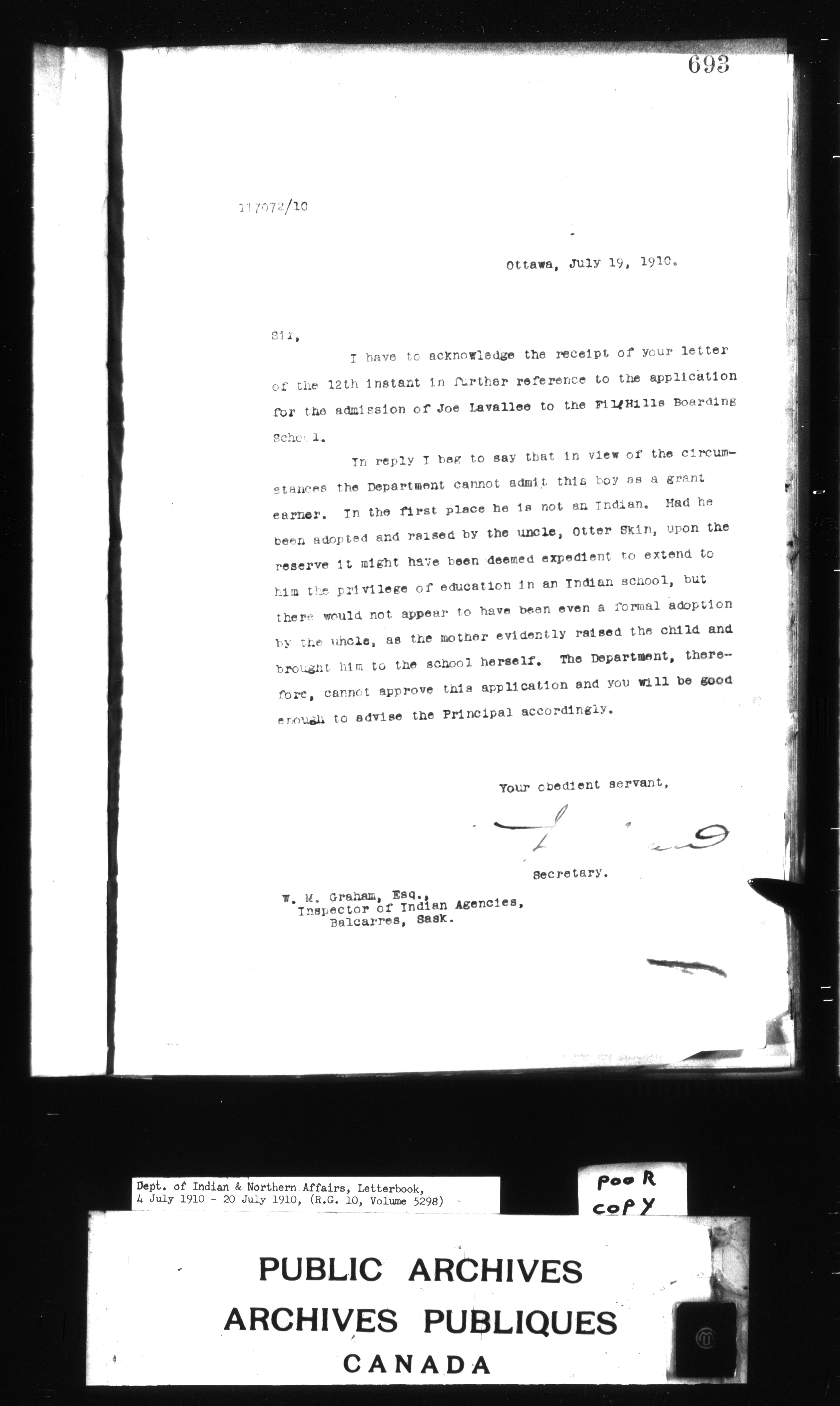 Department of Indian Affairs : Letterbooks of out-going correspondence relating to the administration of Indian Affairs in both eastern and western Canada, 1871-1920 - 8805