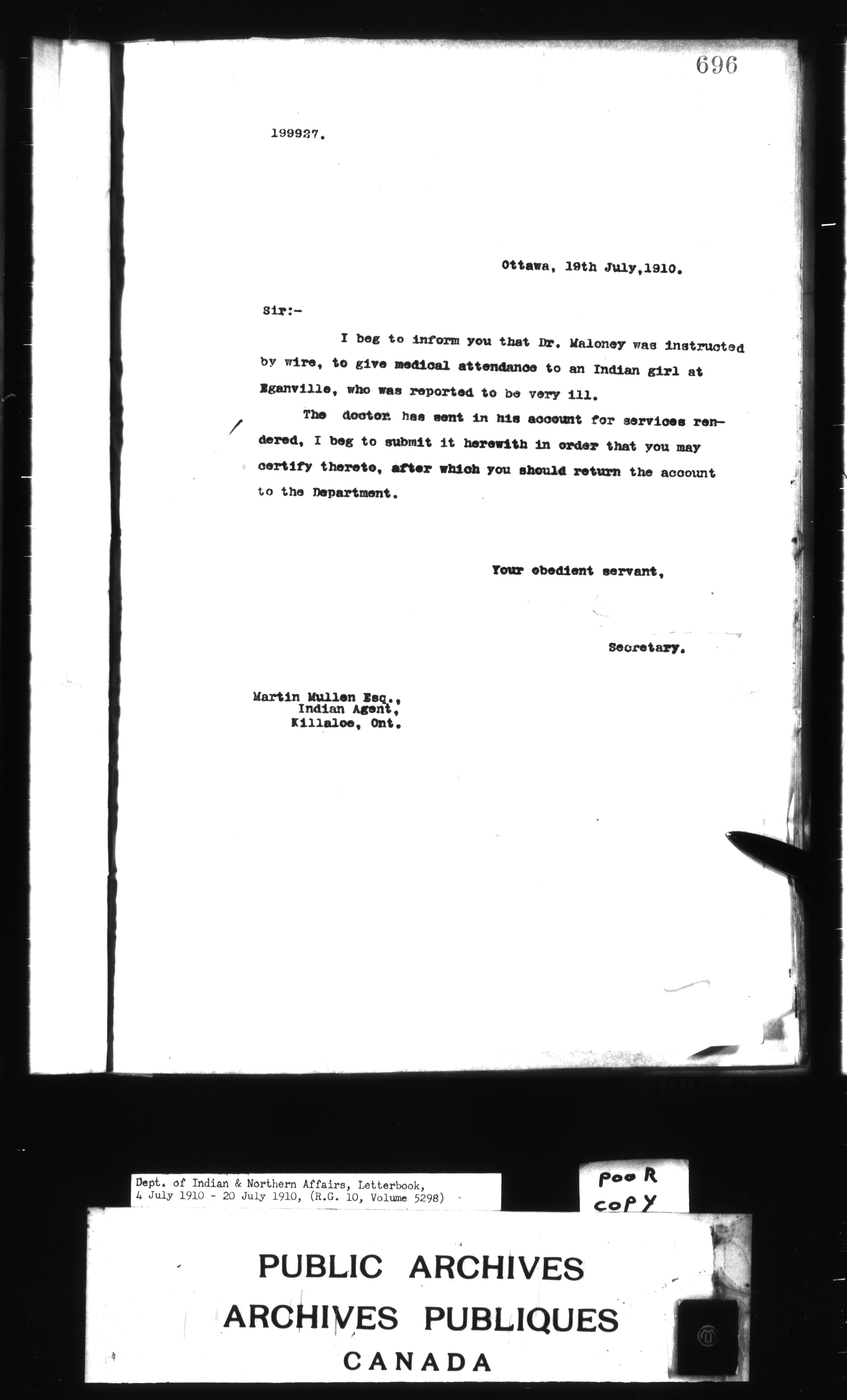 Department of Indian Affairs : Letterbooks of out-going correspondence relating to the administration of Indian Affairs in both eastern and western Canada, 1871-1920 - 8805