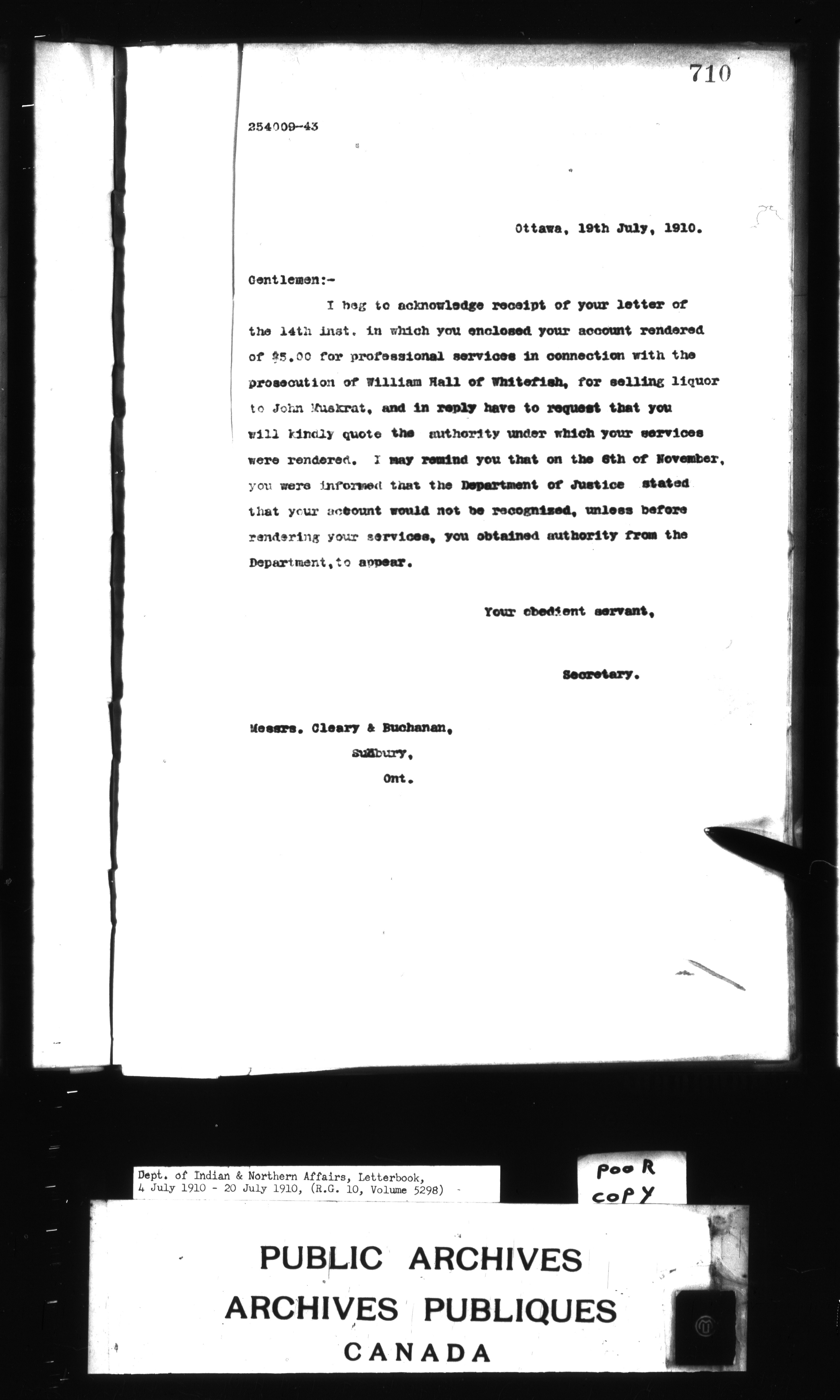 Department of Indian Affairs : Letterbooks of out-going correspondence relating to the administration of Indian Affairs in both eastern and western Canada, 1871-1920 - 8805