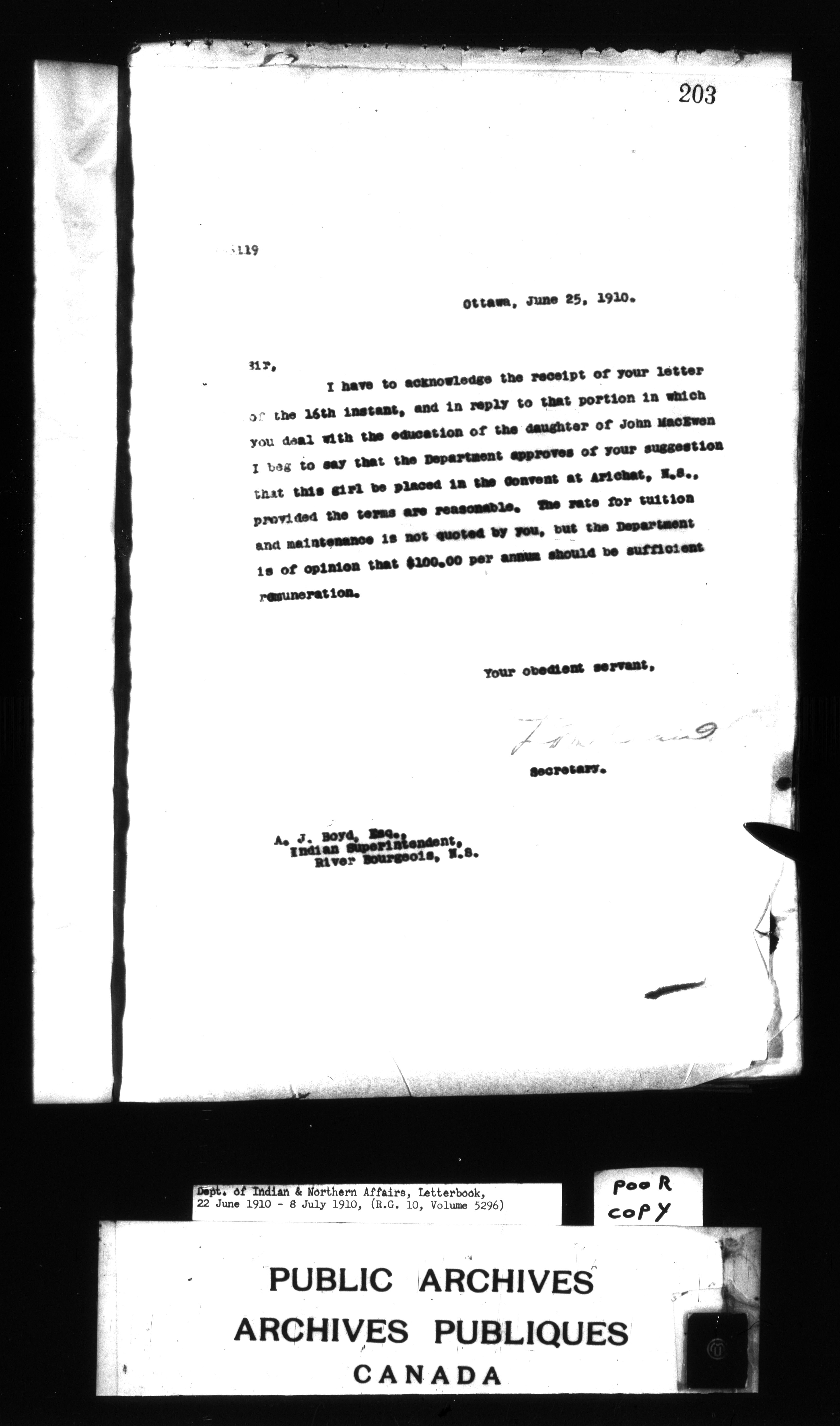 Department of Indian Affairs : Letterbooks of out-going correspondence relating to the administration of Indian Affairs in both eastern and western Canada, 1871-1920 - 8805