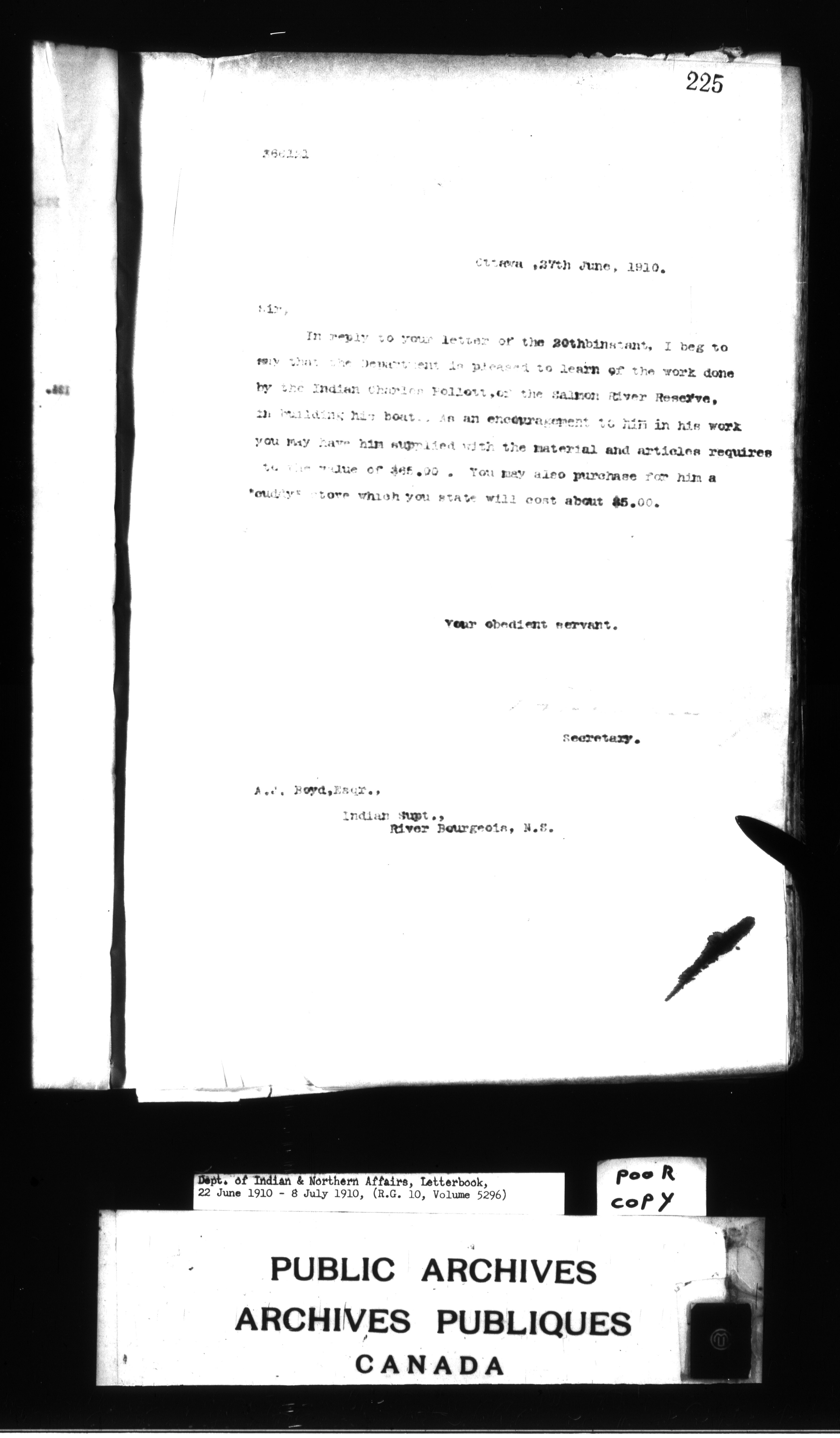 Department of Indian Affairs : Letterbooks of out-going correspondence relating to the administration of Indian Affairs in both eastern and western Canada, 1871-1920 - 8805