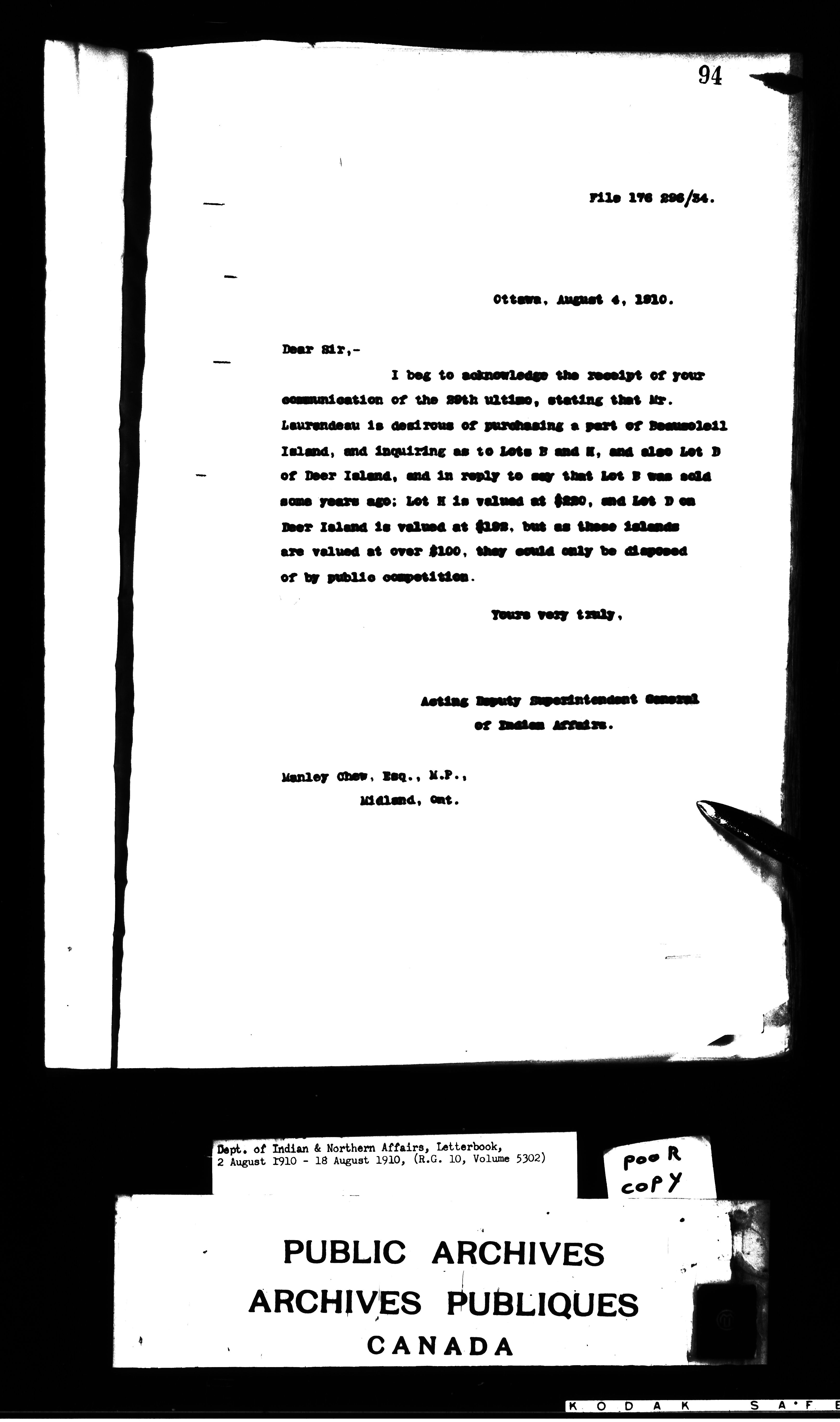 Department of Indian Affairs : Departmental letterbooks : C-8806