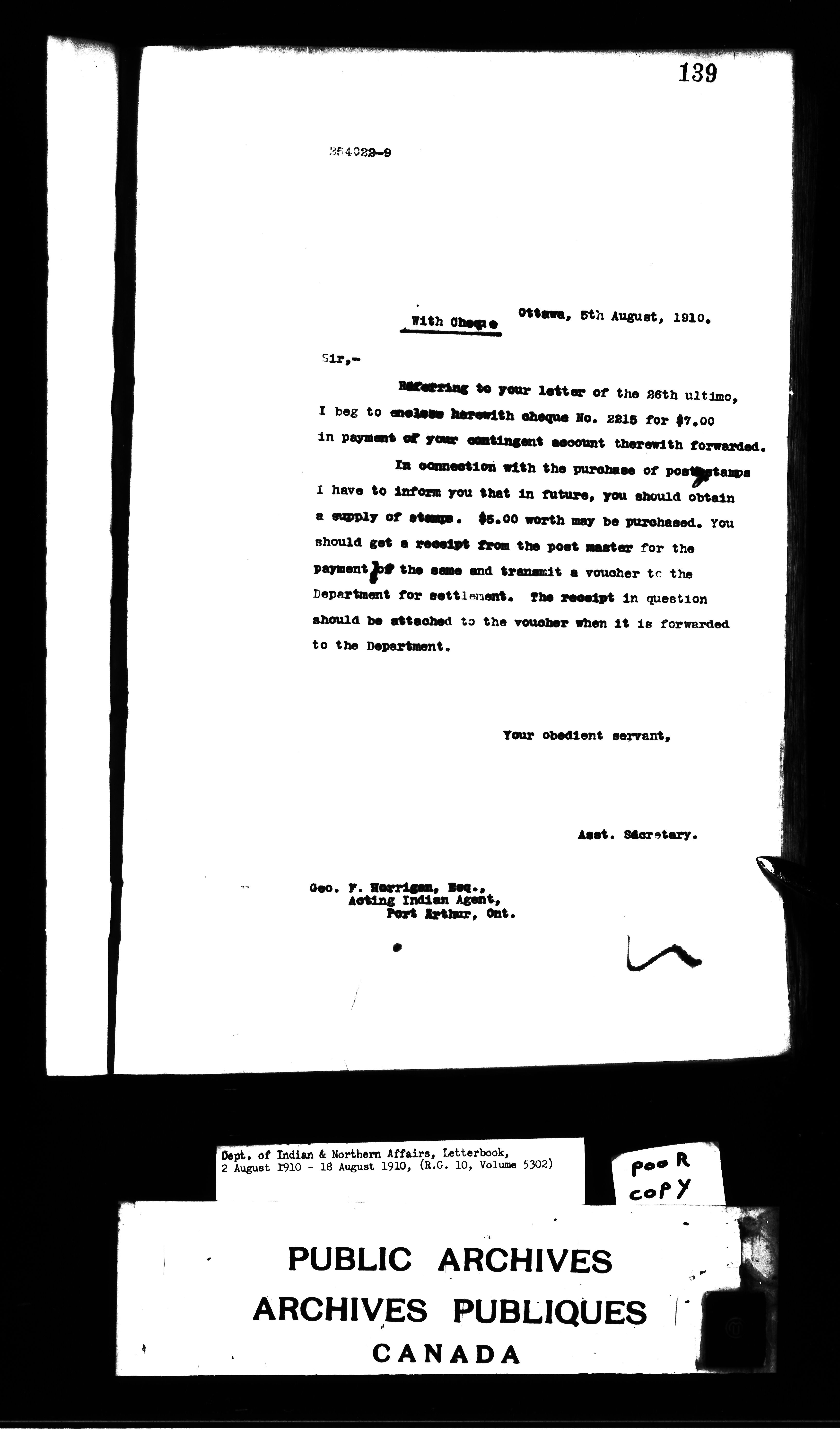 Department of Indian Affairs : Letterbooks of out-going correspondence relating to the administration of Indian Affairs in both eastern and western Canada, 1871-1920 - 8806