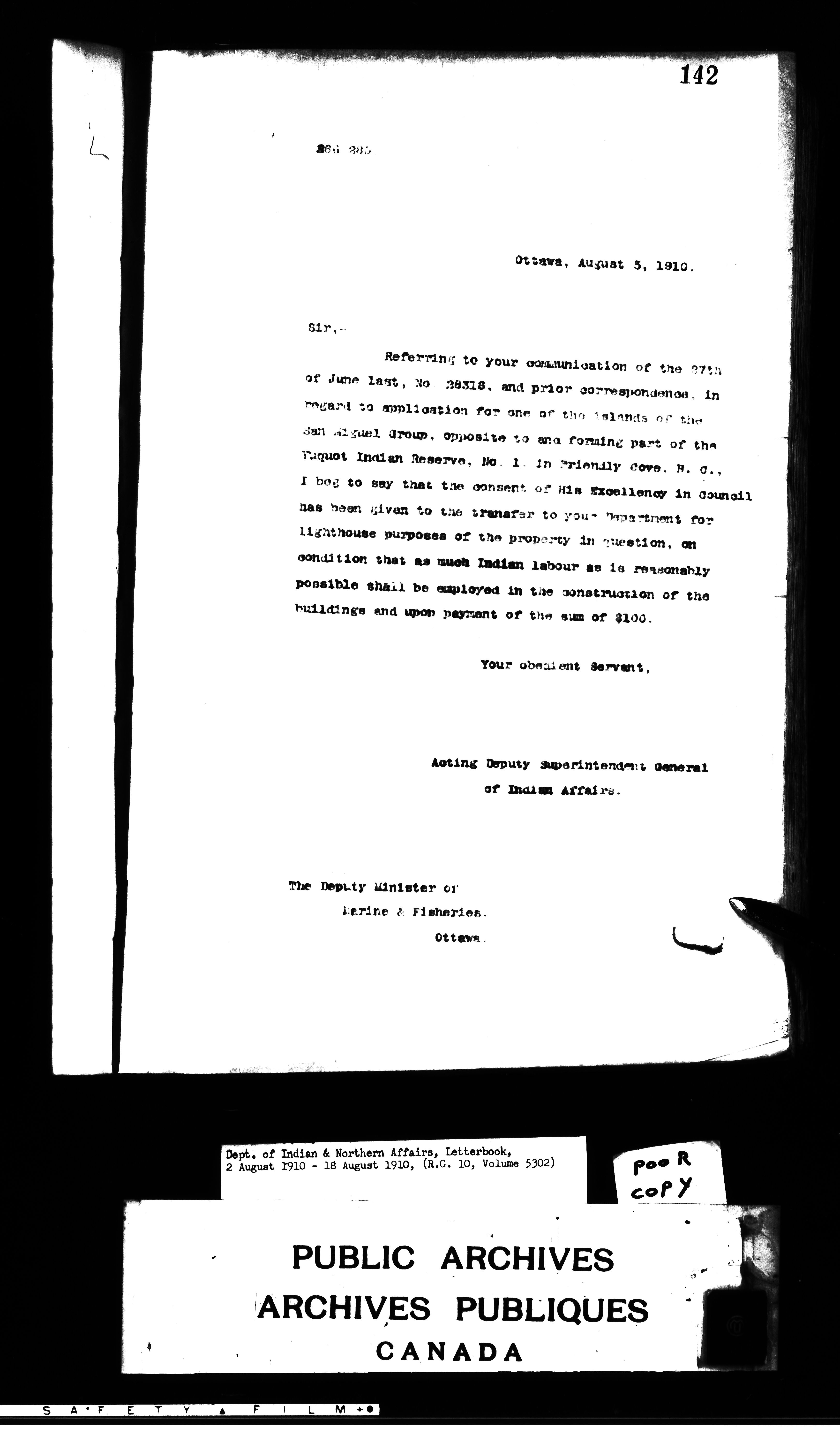 Department of Indian Affairs : Letterbooks of out-going correspondence relating to the administration of Indian Affairs in both eastern and western Canada, 1871-1920 - 8806