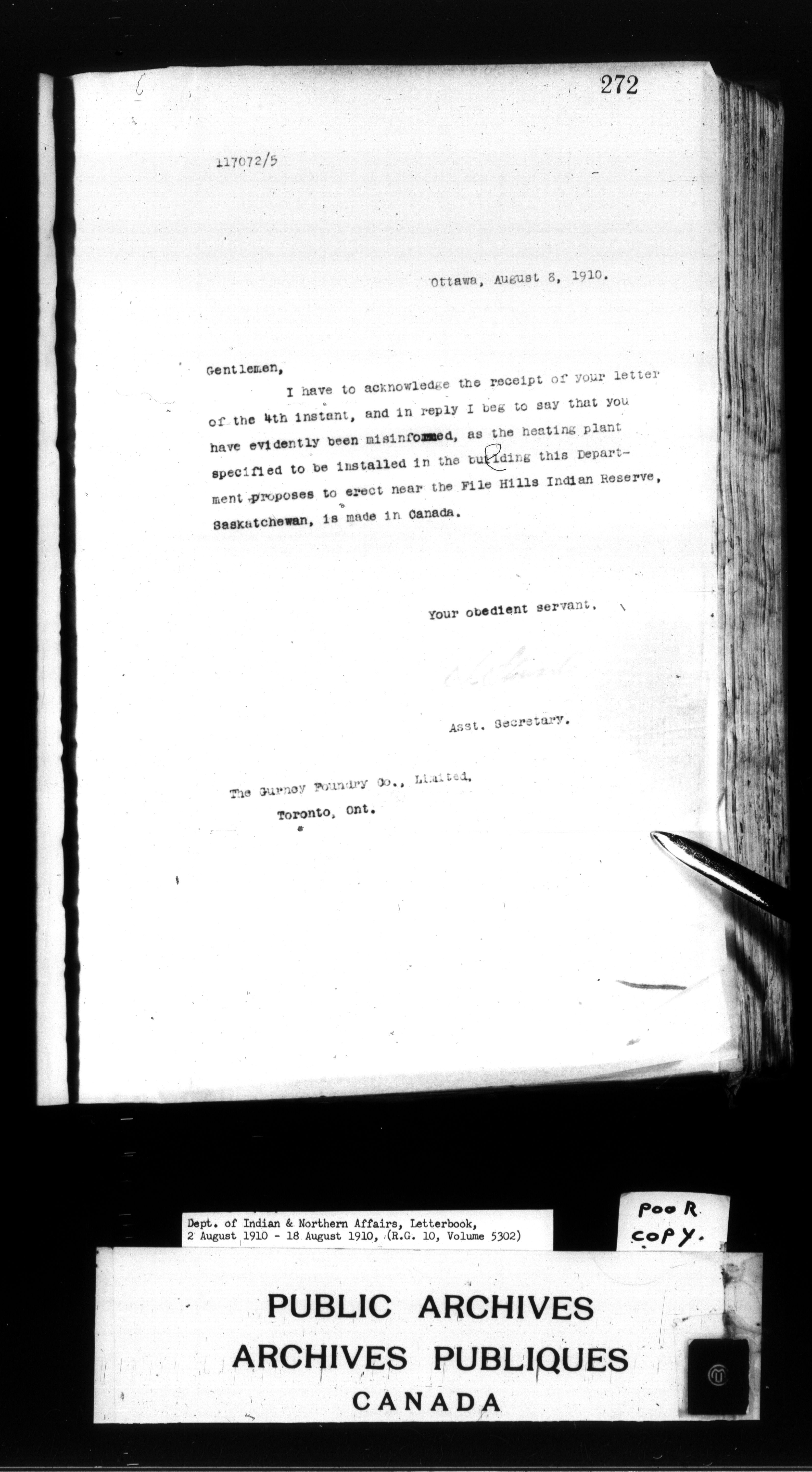 Department of Indian Affairs : Letterbooks of out-going correspondence relating to the administration of Indian Affairs in both eastern and western Canada, 1871-1920 - 8807