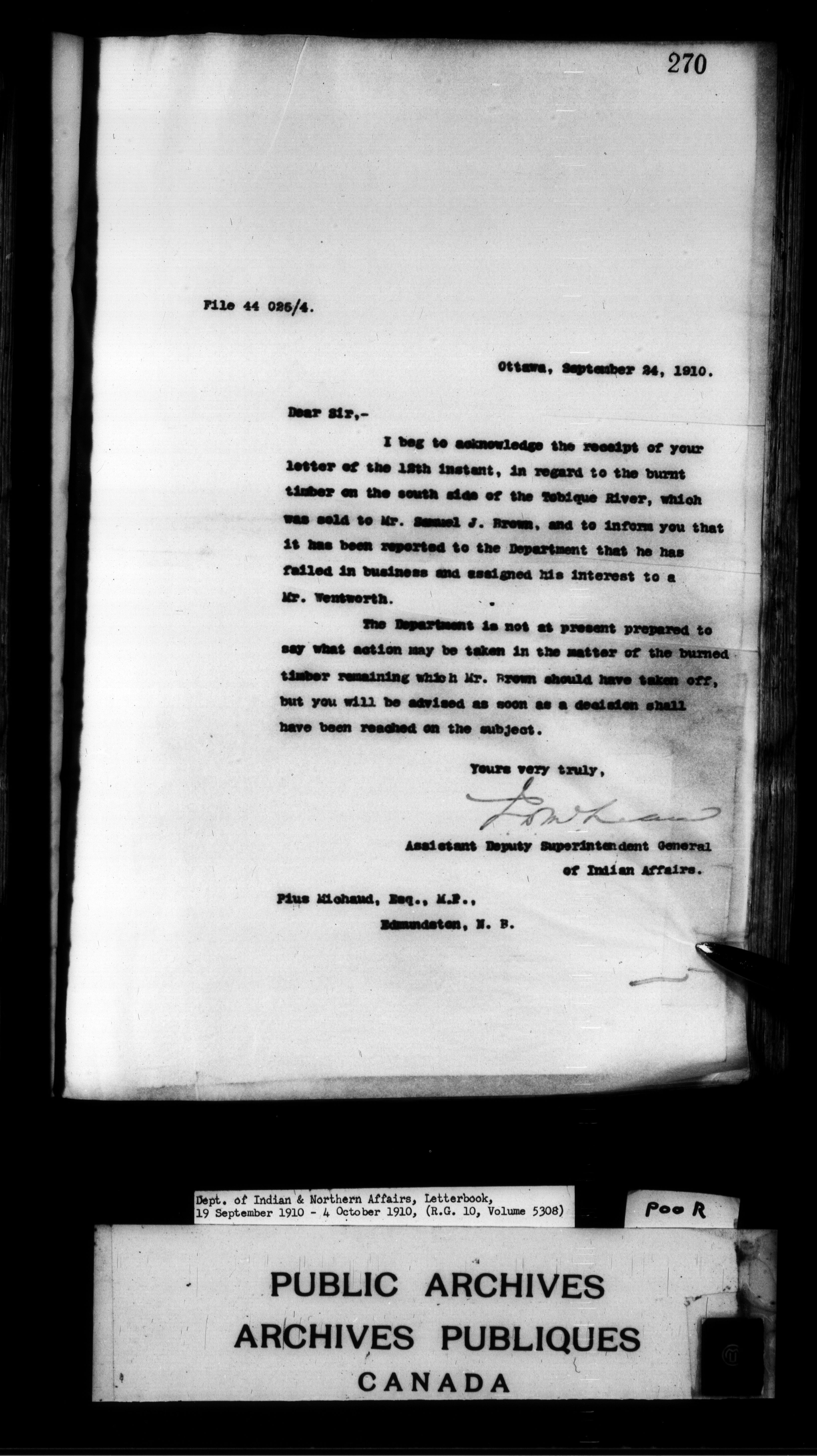 Department of Indian Affairs : Departmental letterbooks : C-8808