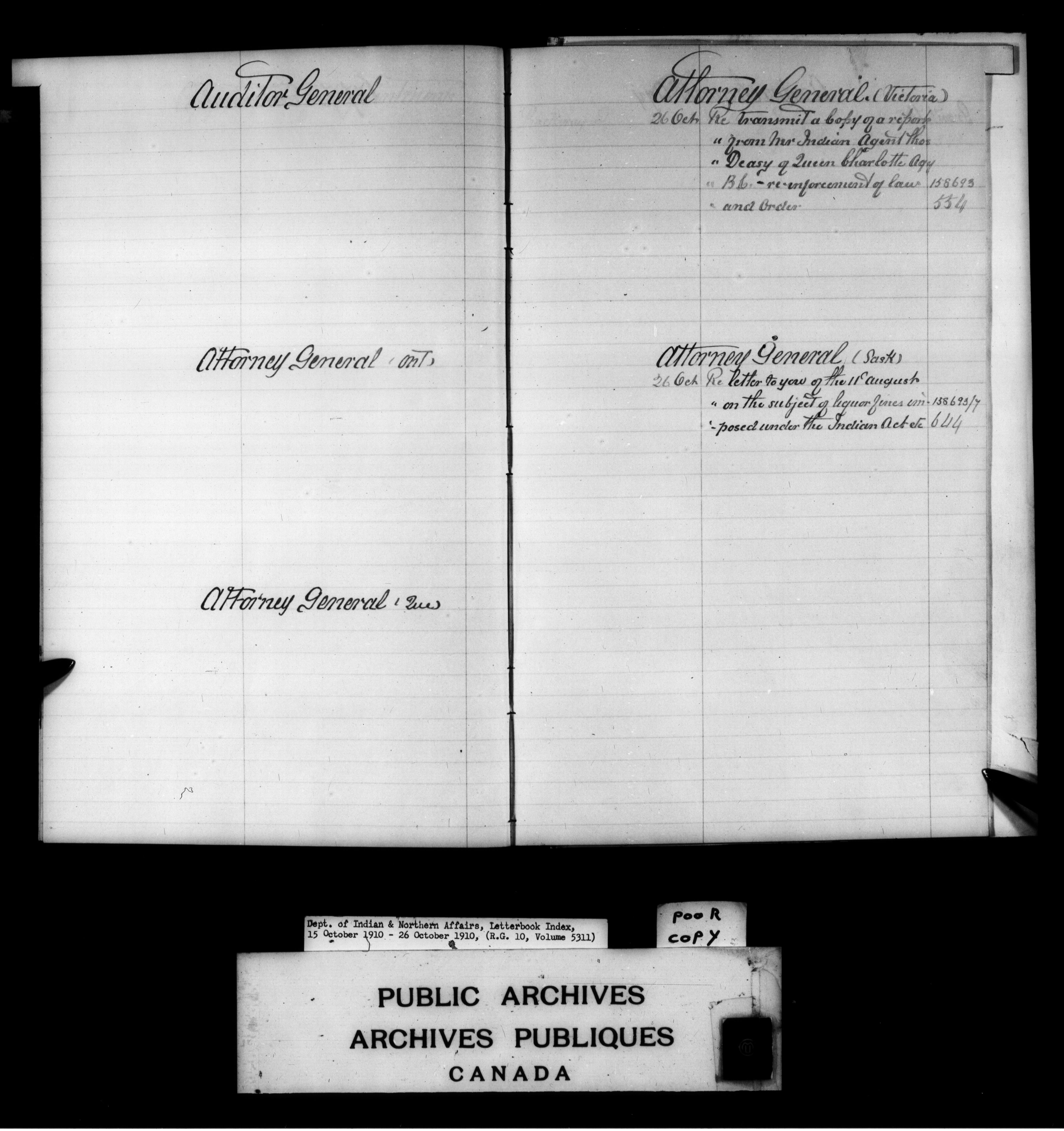 Department of Indian Affairs : Letterbooks of out-going correspondence relating to the administration of Indian Affairs in both eastern and western Canada, 1871-1920 - 8810
