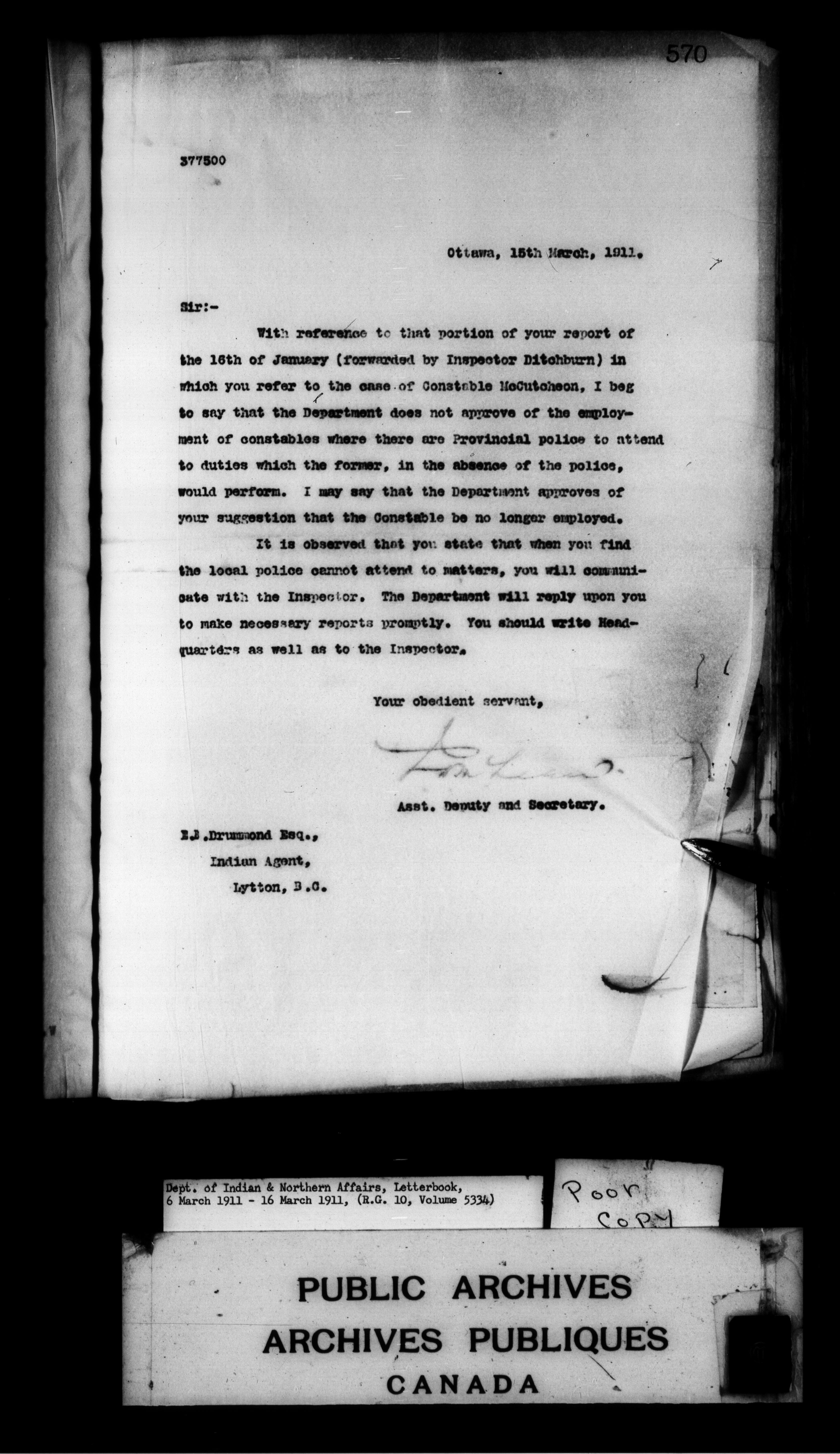 Department of Indian Affairs : Letterbooks of out-going correspondence relating to the administration of Indian Affairs in both eastern and western Canada, 1871-1920 - 8817