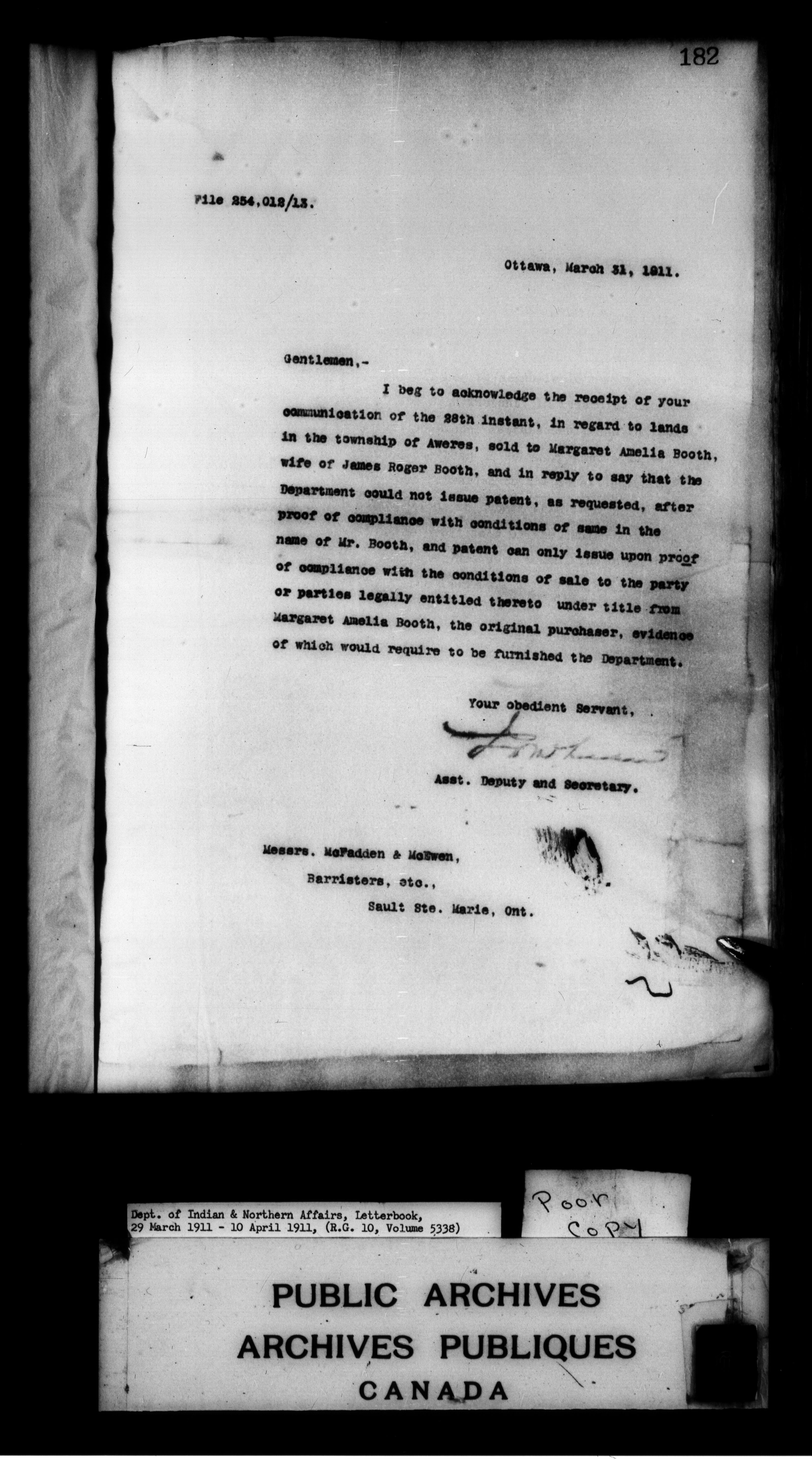 Department of Indian Affairs : Letterbooks of out-going correspondence relating to the administration of Indian Affairs in both eastern and western Canada, 1871-1920 - 8819