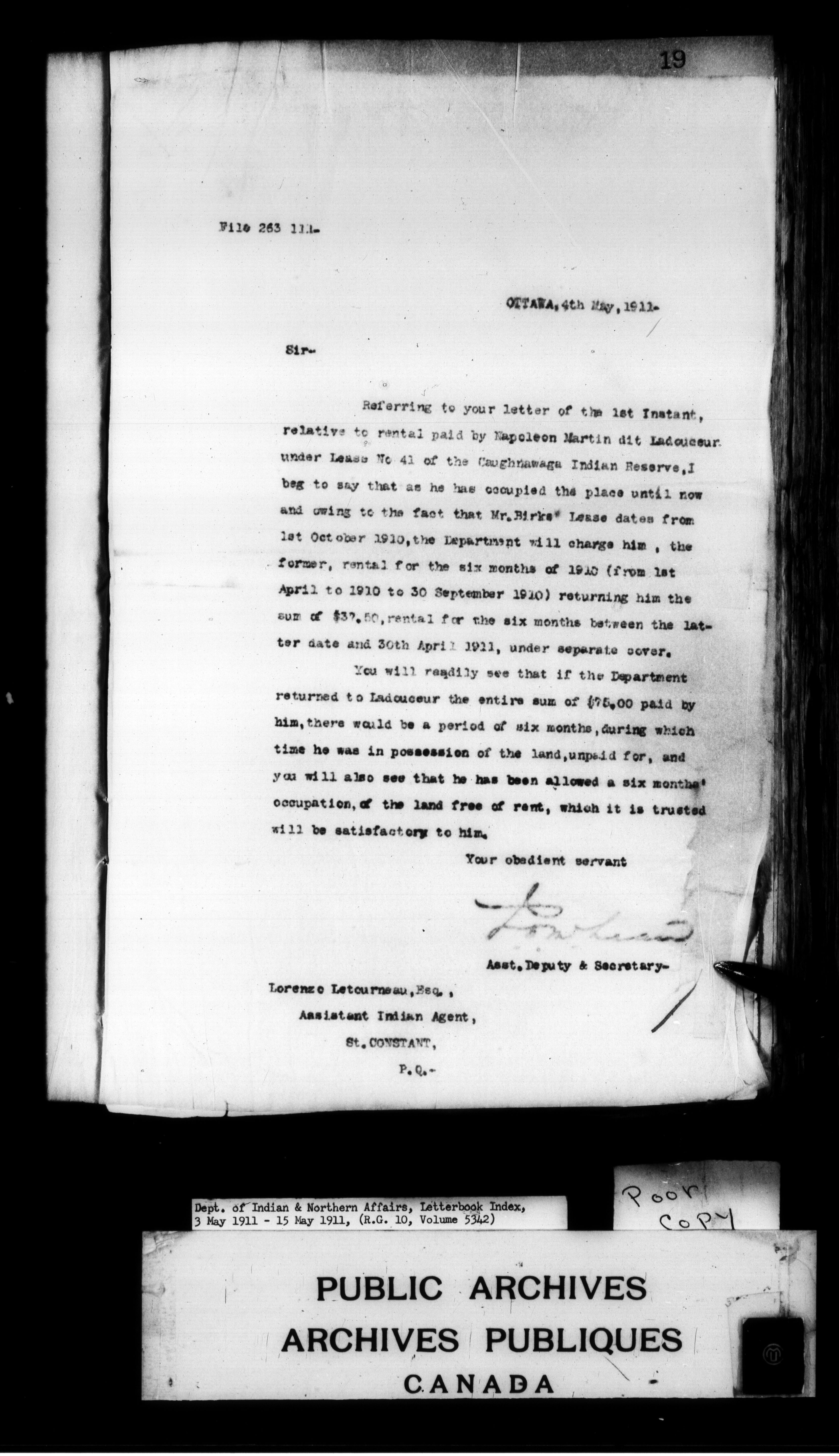Department of Indian Affairs : Letterbooks of out-going correspondence relating to the administration of Indian Affairs in both eastern and western Canada, 1871-1920 - 8821