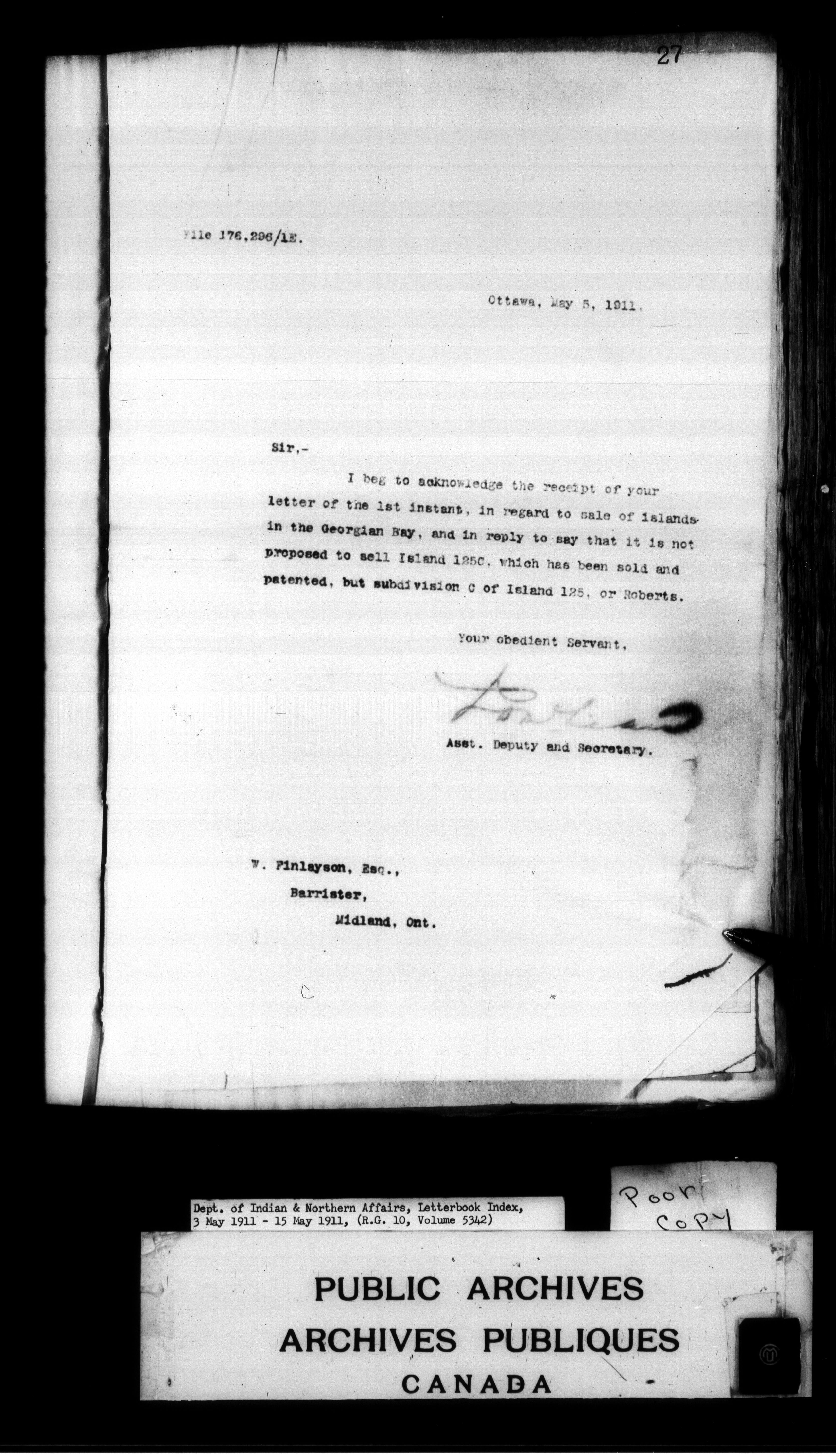Department of Indian Affairs : Letterbooks of out-going correspondence relating to the administration of Indian Affairs in both eastern and western Canada, 1871-1920 - 8821
