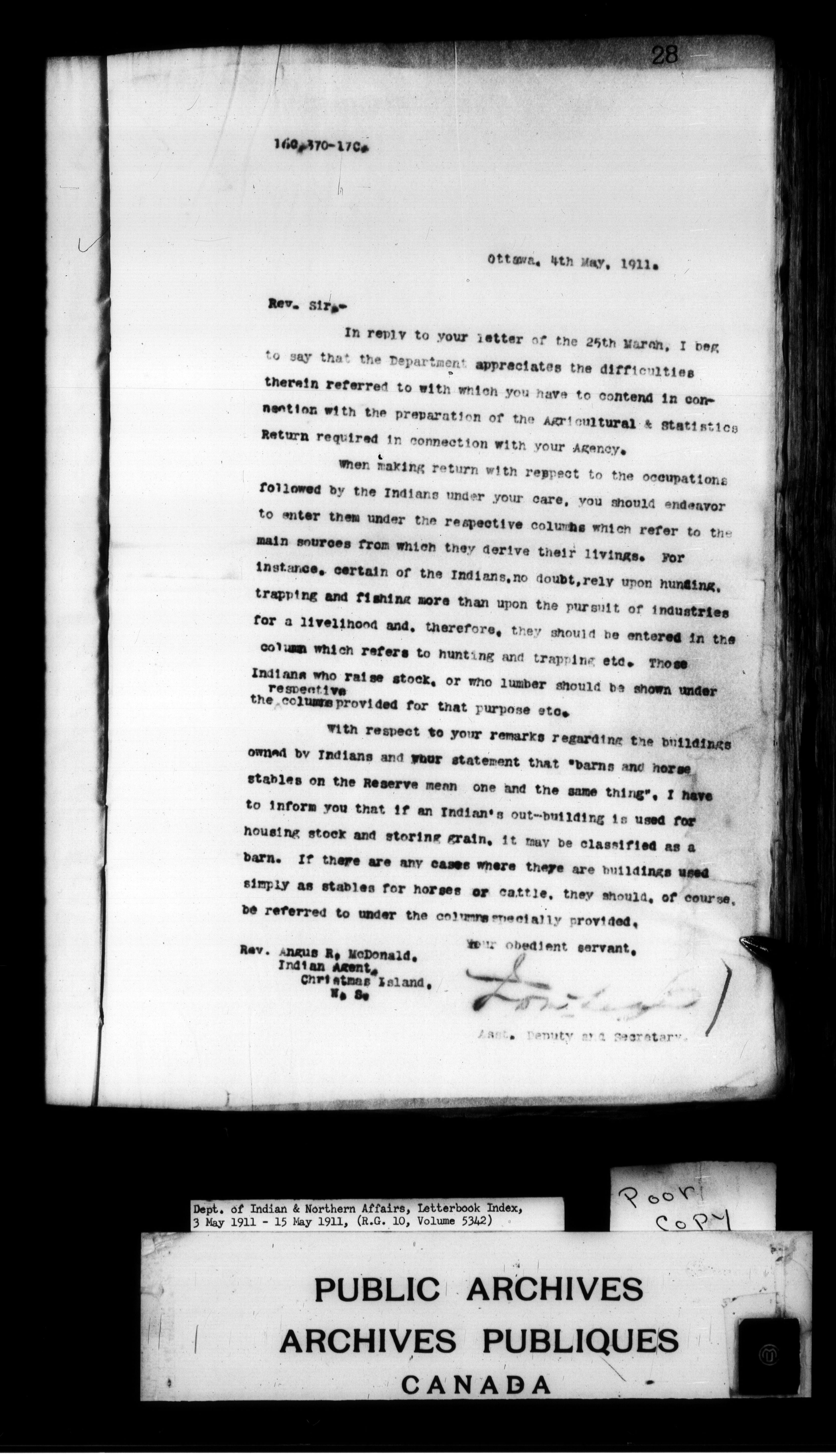 Department of Indian Affairs : Letterbooks of out-going correspondence relating to the administration of Indian Affairs in both eastern and western Canada, 1871-1920 - 8821