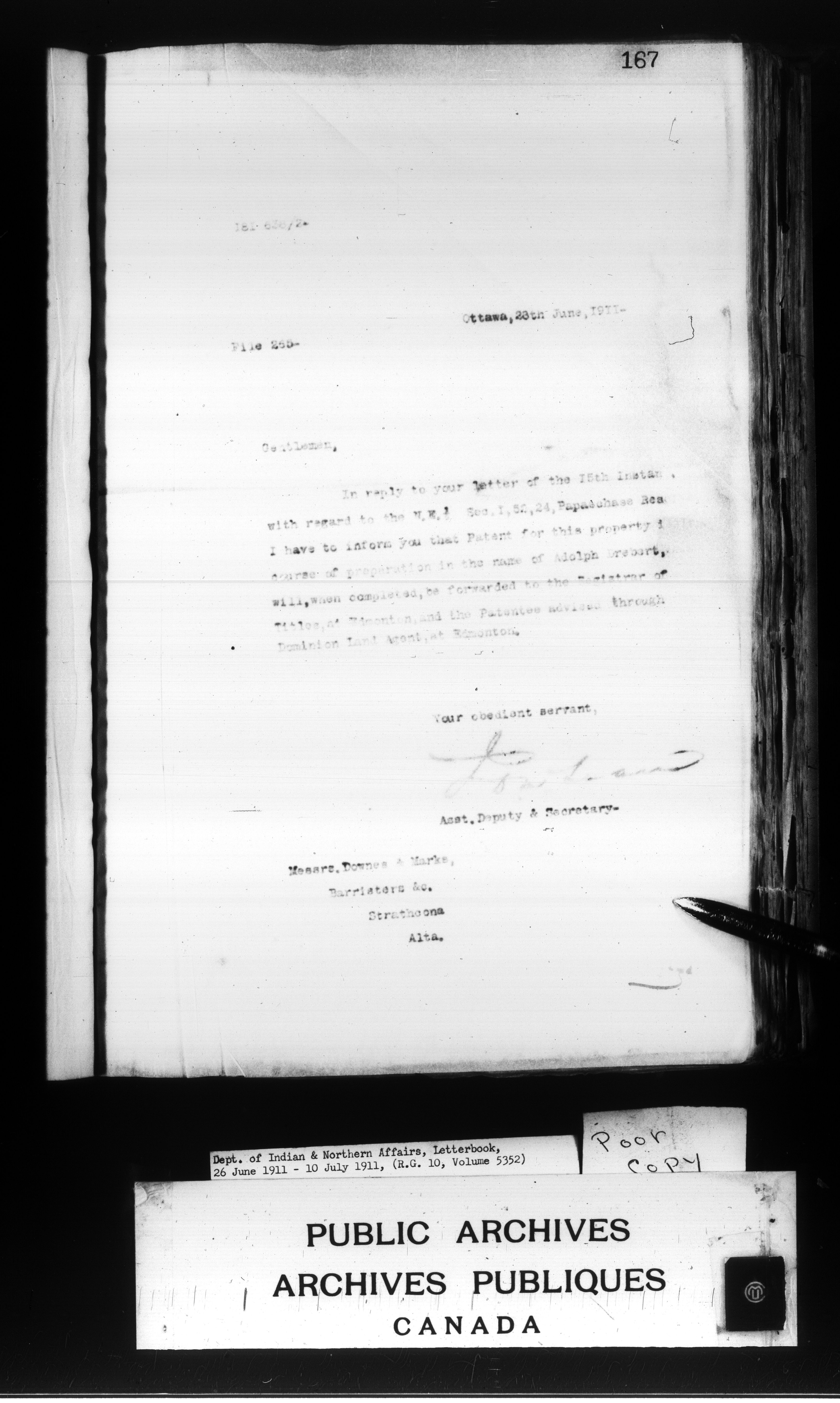 Department of Indian Affairs : Letterbooks of out-going correspondence relating to the administration of Indian Affairs in both eastern and western Canada, 1871-1920 - 8823