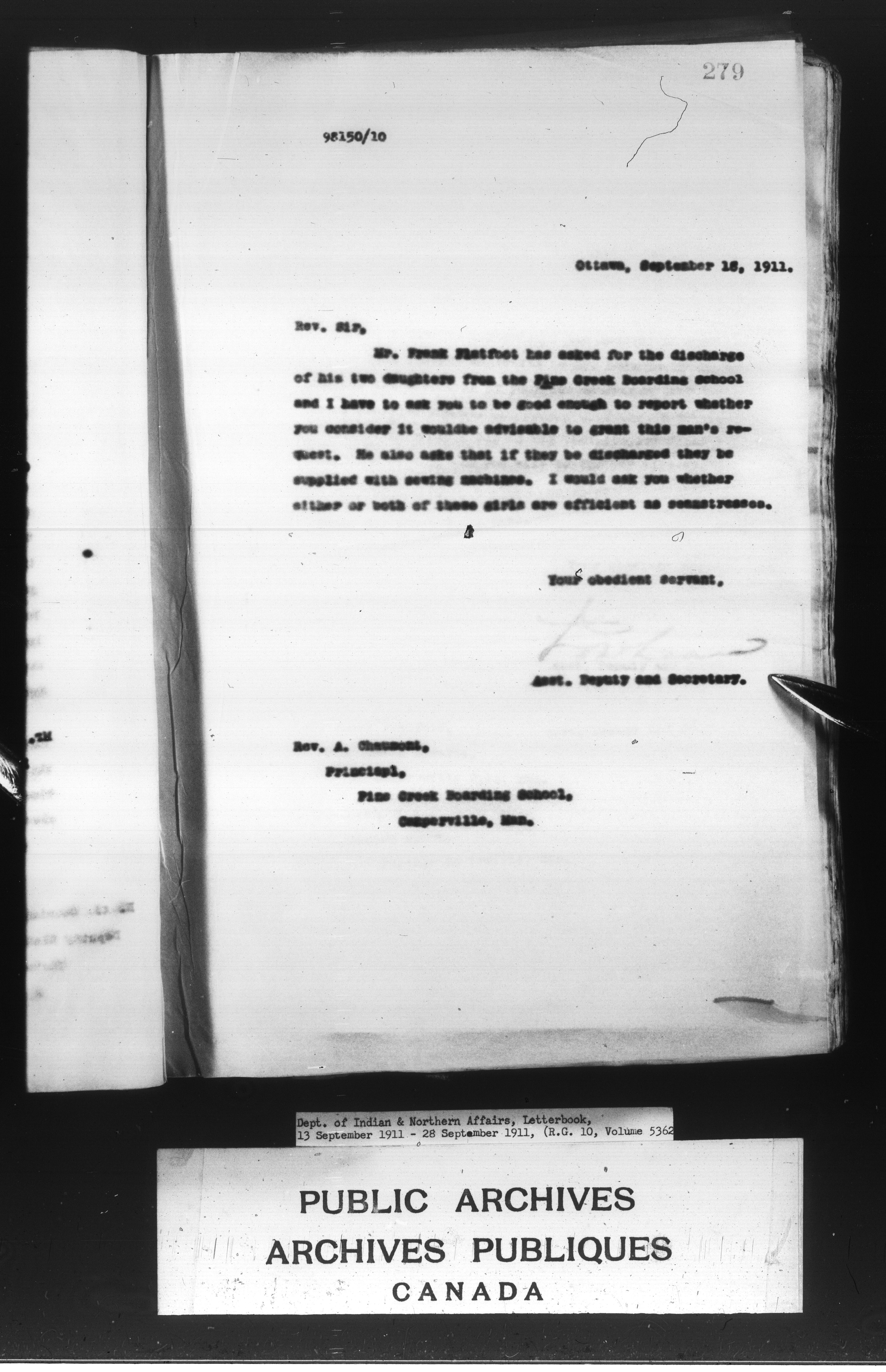Department of Indian Affairs : Letterbooks of out-going correspondence relating to the administration of Indian Affairs in both eastern and western Canada, 1871-1920 - 8827