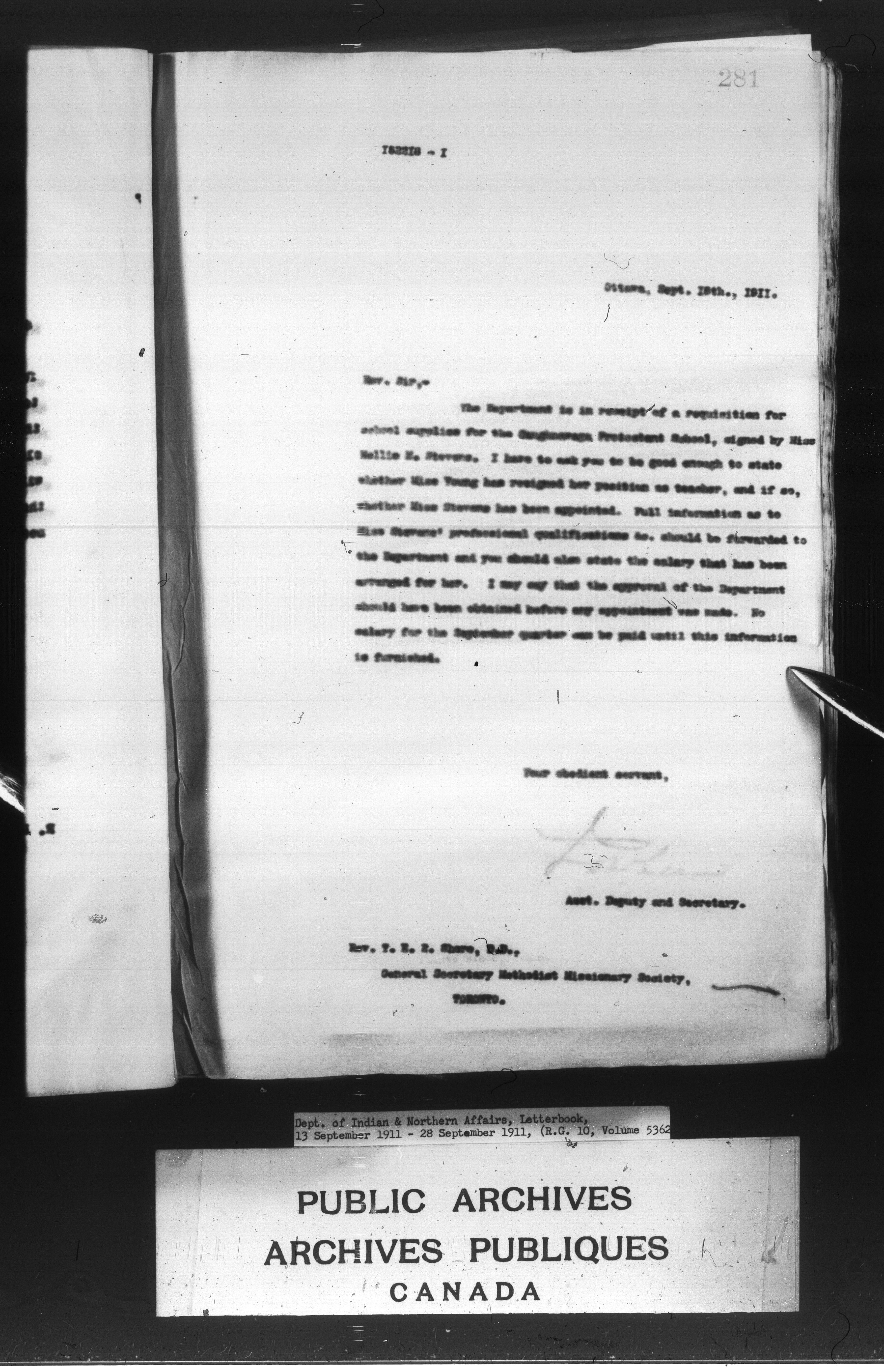 Department of Indian Affairs : Letterbooks of out-going correspondence relating to the administration of Indian Affairs in both eastern and western Canada, 1871-1920 - 8827