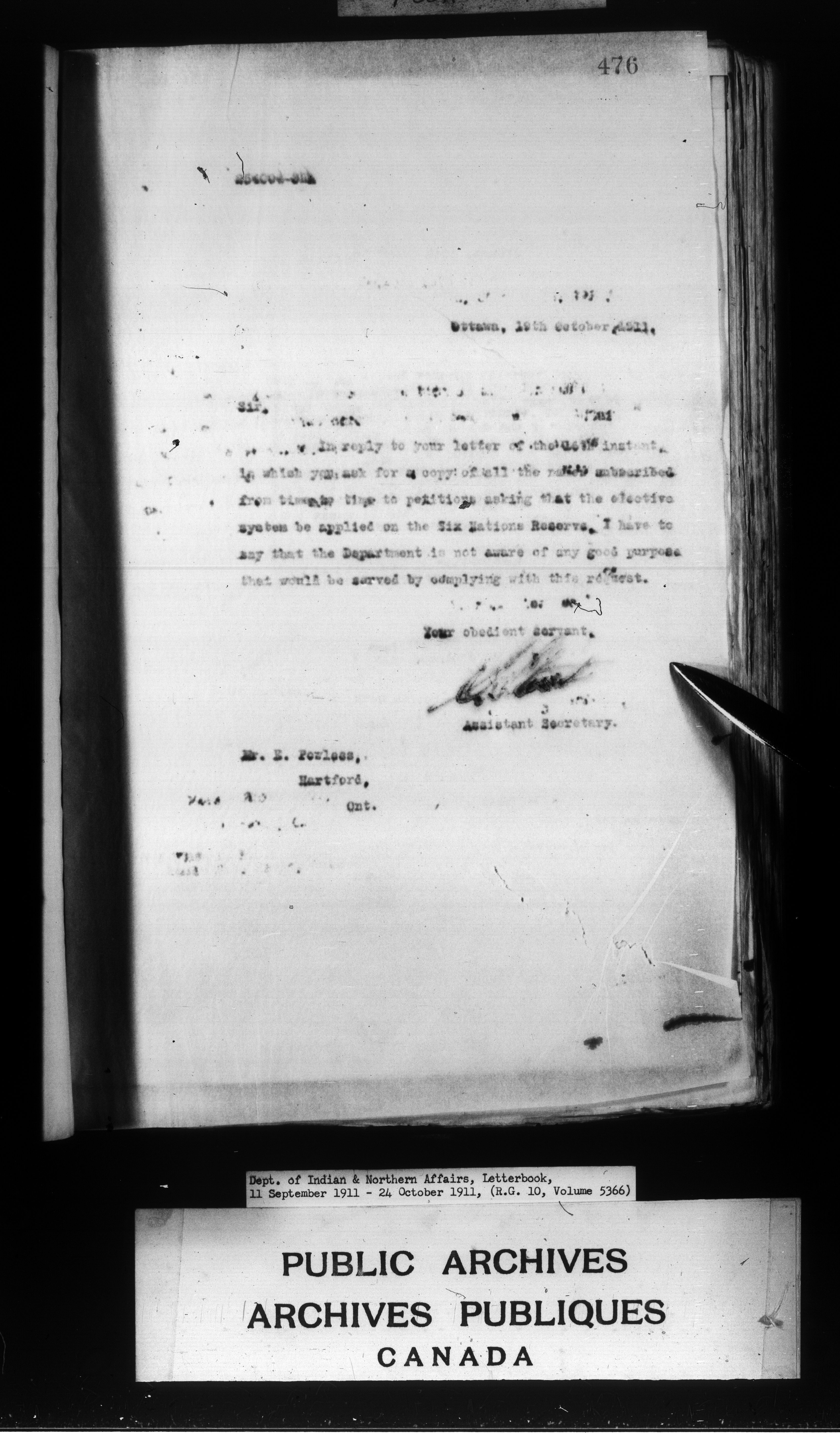 Department of Indian Affairs : Letterbooks of out-going correspondence relating to the administration of Indian Affairs in both eastern and western Canada, 1871-1920 - 8830