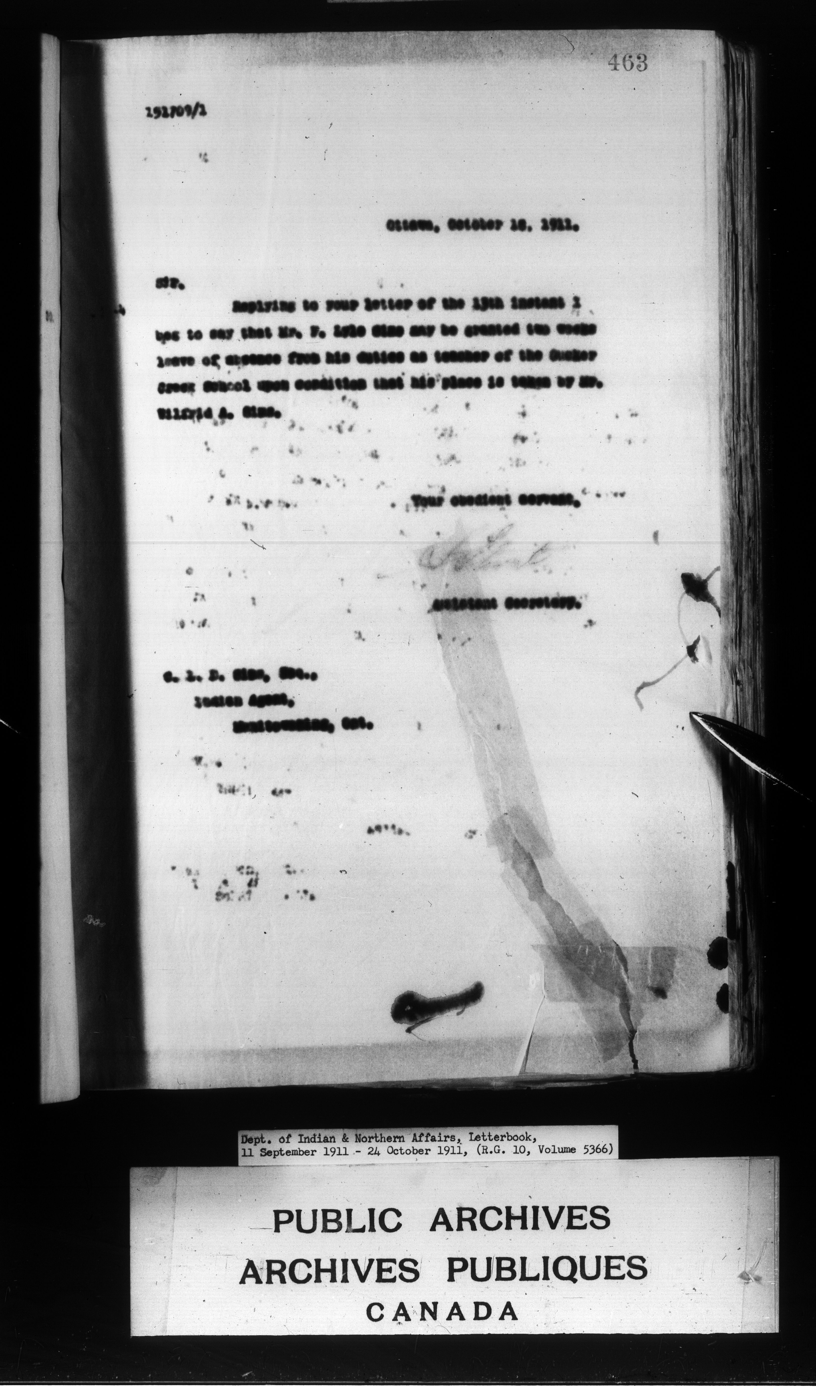 Department of Indian Affairs : Letterbooks of out-going correspondence relating to the administration of Indian Affairs in both eastern and western Canada, 1871-1920 - 8830