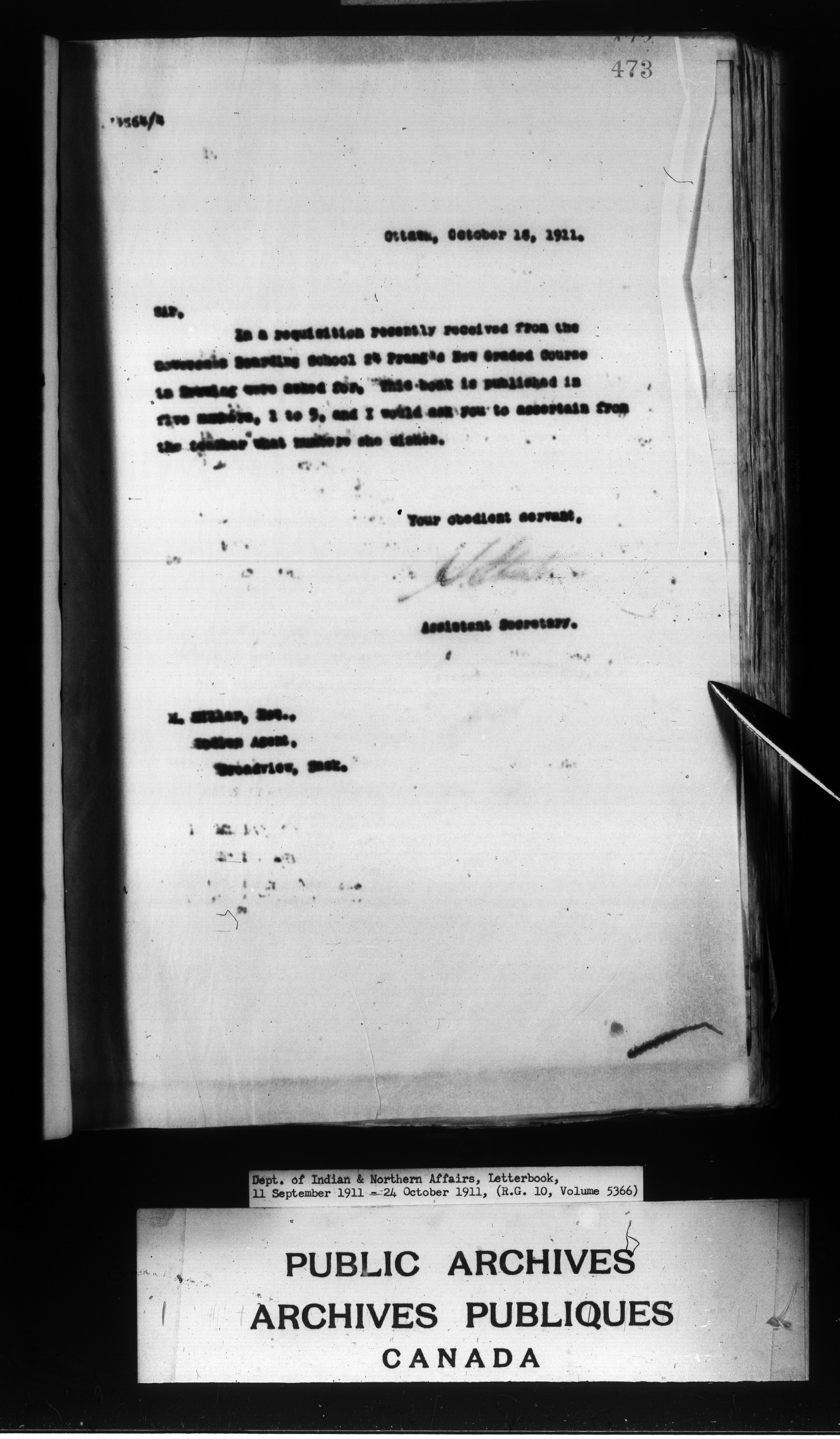 Department of Indian Affairs : Letterbooks of out-going correspondence relating to the administration of Indian Affairs in both eastern and western Canada, 1871-1920 - 8830