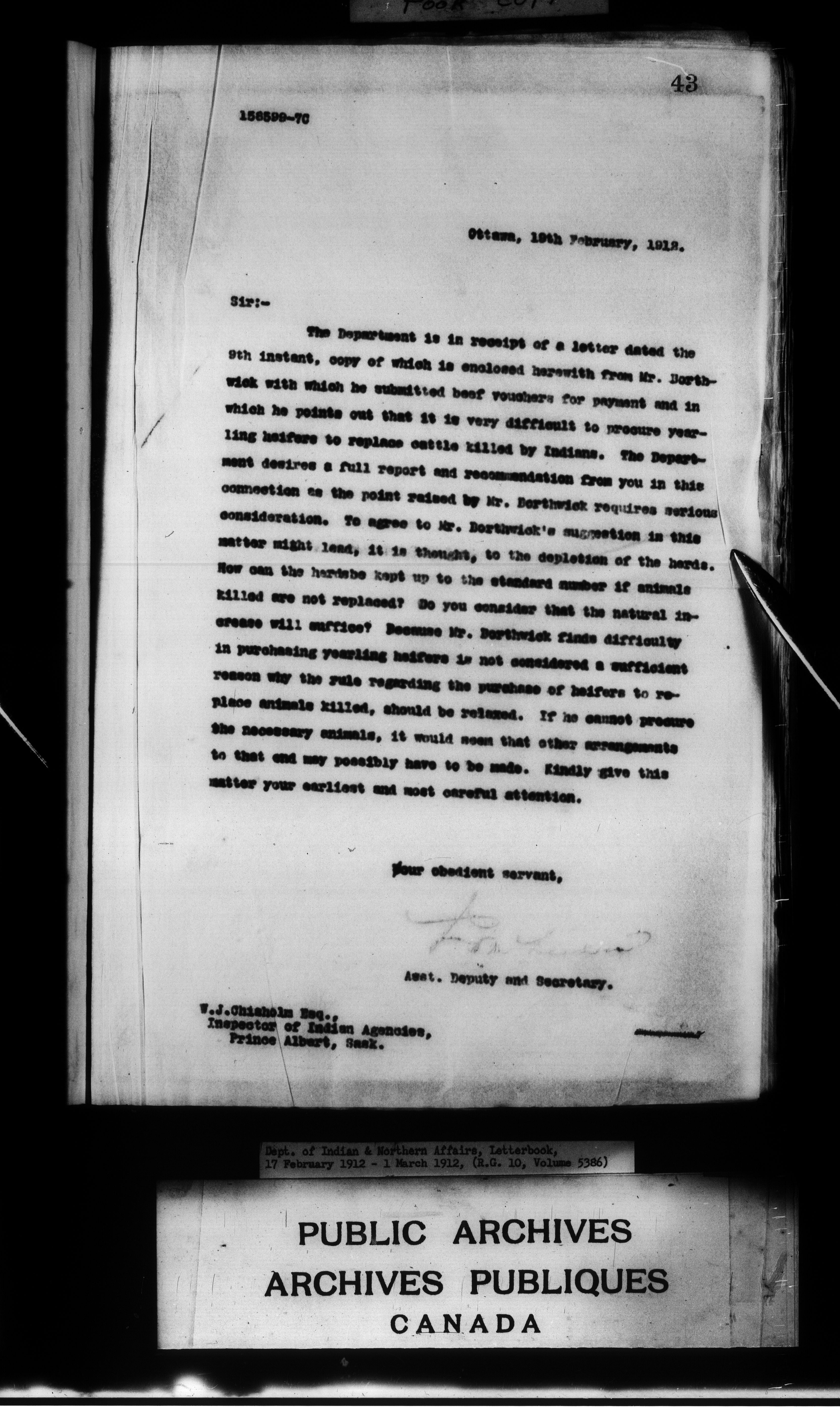 Department of Indian Affairs : Letterbooks of out-going correspondence relating to the administration of Indian Affairs in both eastern and western Canada, 1871-1920 - 8836