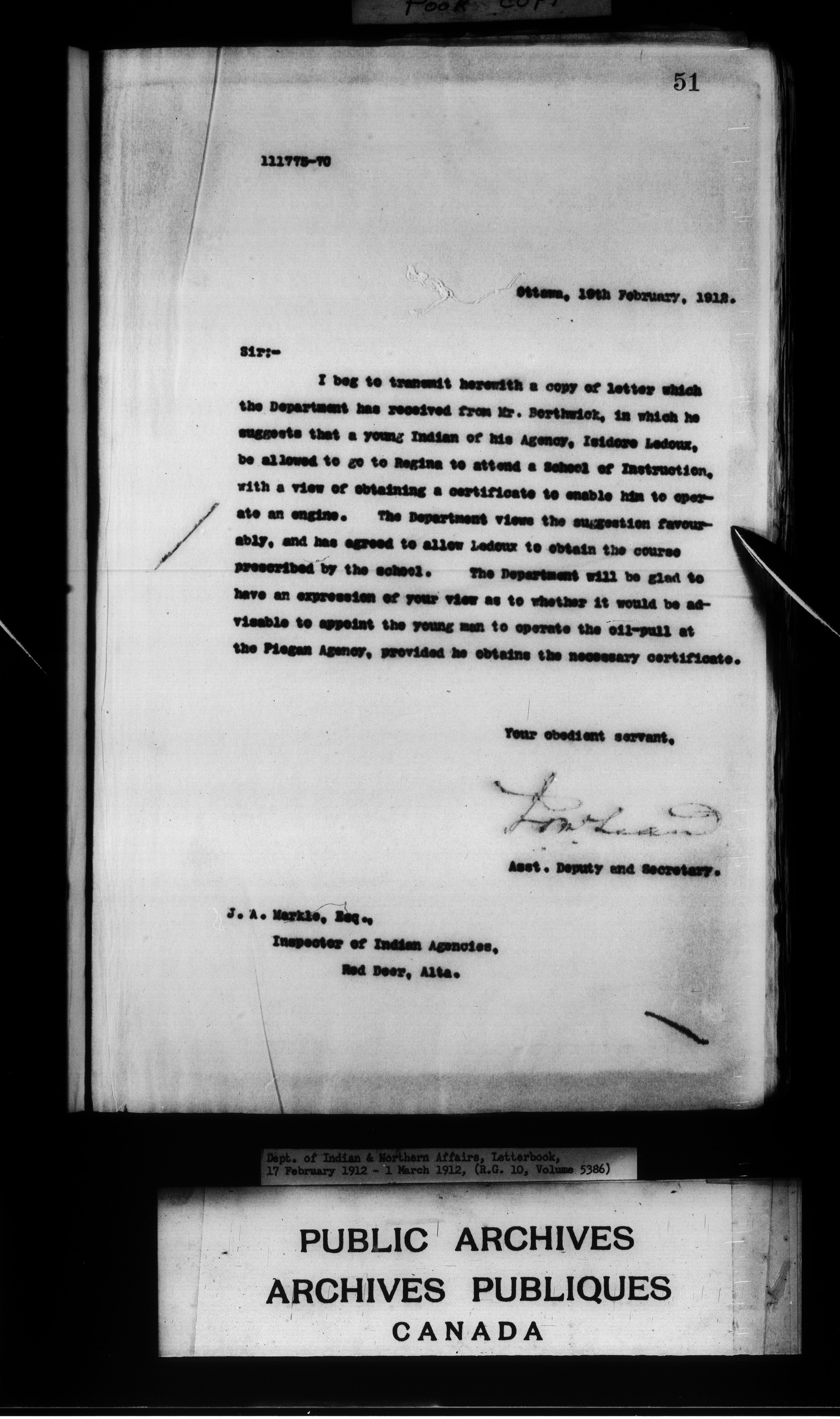 Department of Indian Affairs : Letterbooks of out-going correspondence relating to the administration of Indian Affairs in both eastern and western Canada, 1871-1920 - 8836