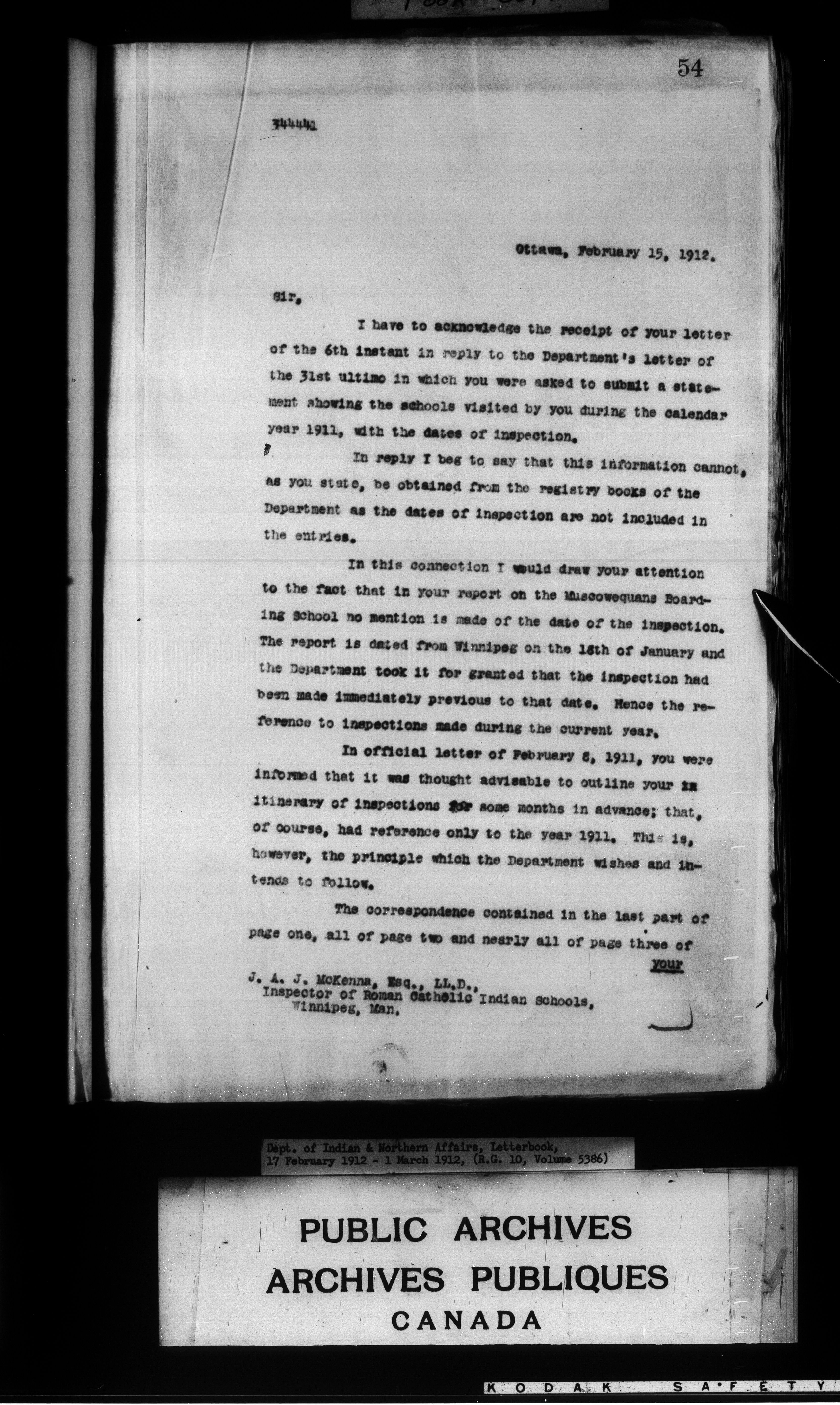 Department of Indian Affairs : Letterbooks of out-going correspondence relating to the administration of Indian Affairs in both eastern and western Canada, 1871-1920 - 8836