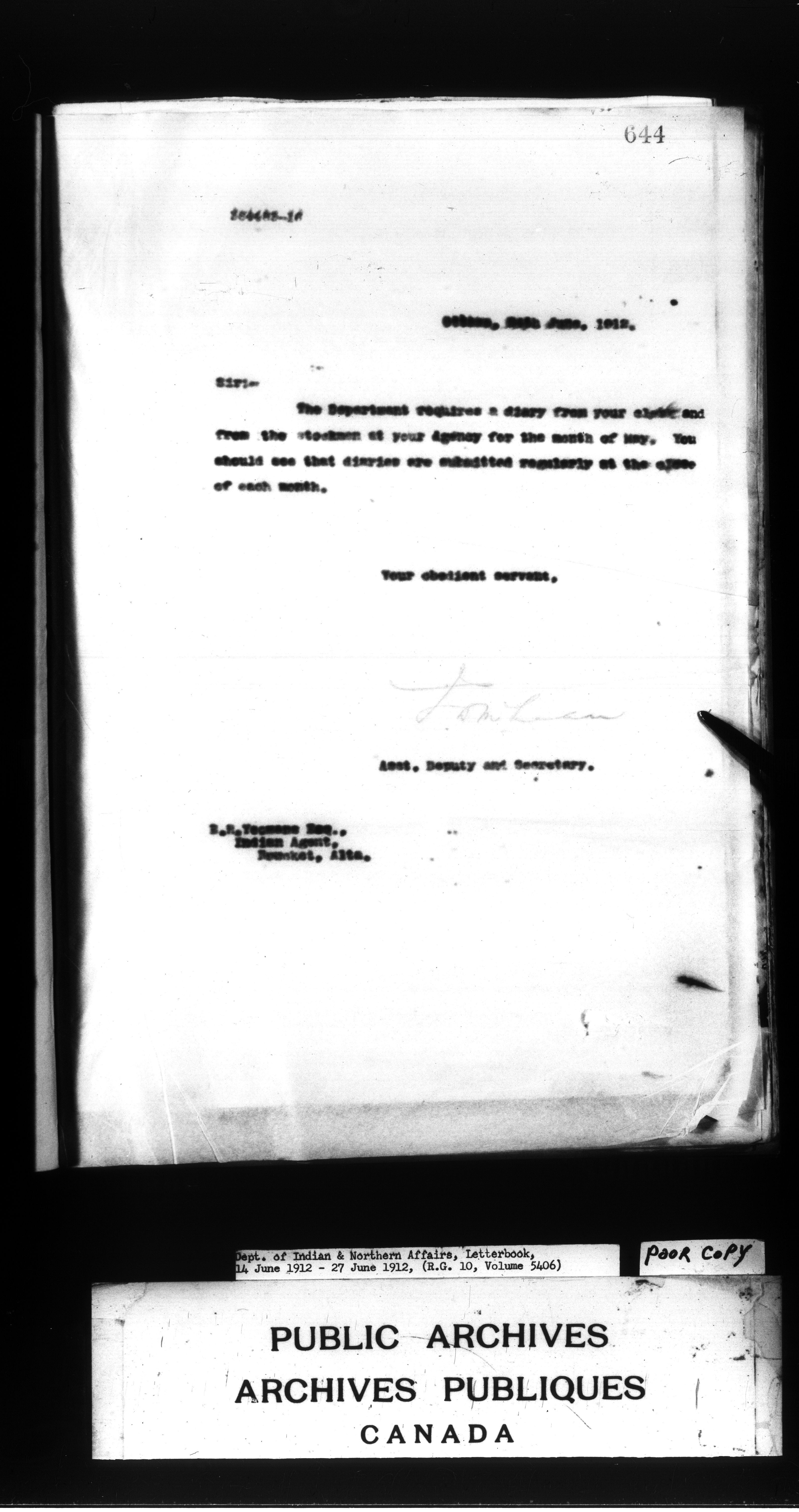 Department of Indian Affairs : Letterbooks of out-going correspondence relating to the administration of Indian Affairs in both eastern and western Canada, 1871-1920 - 8844