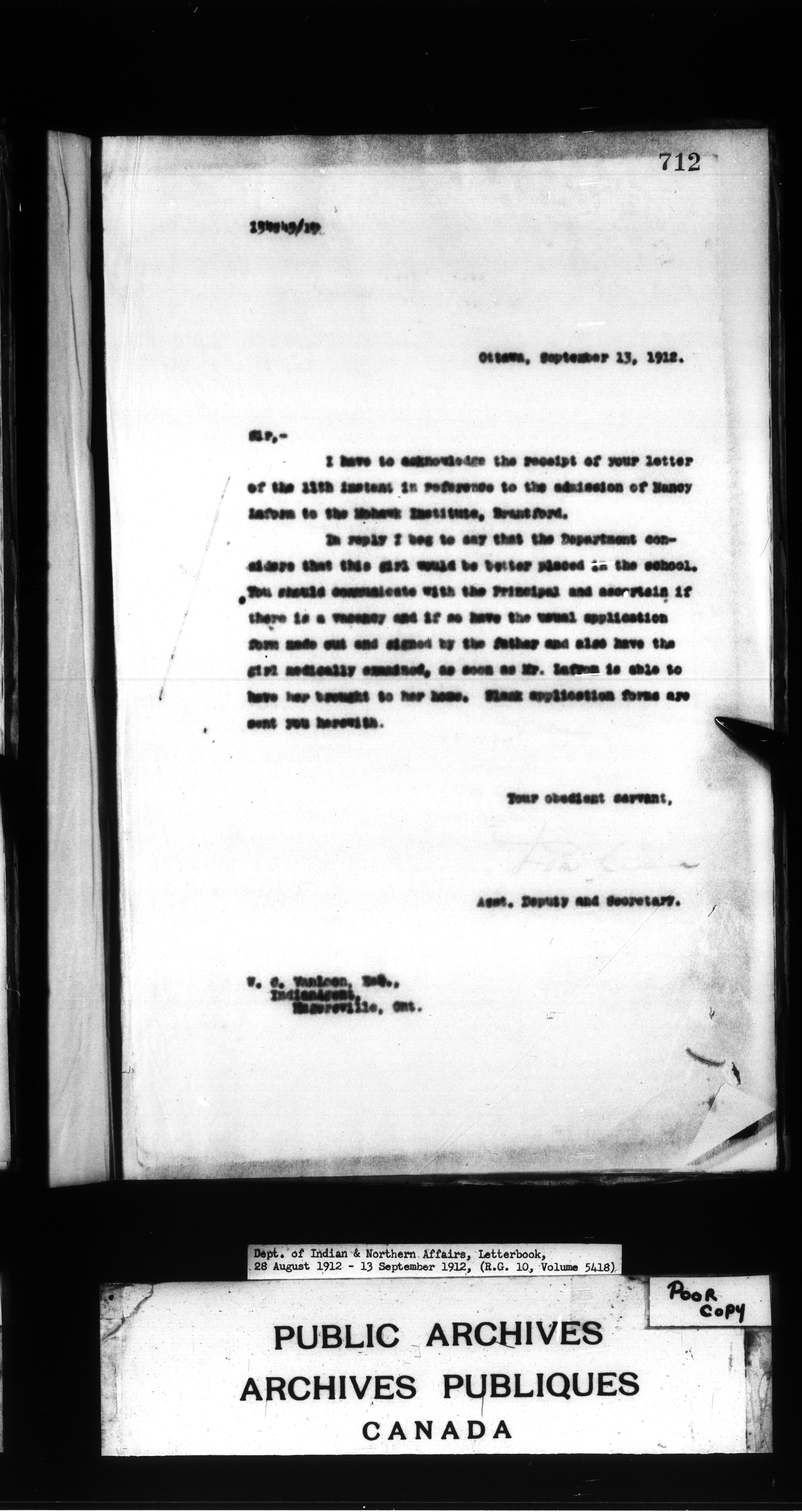 Department of Indian Affairs : Letterbooks of out-going correspondence relating to the administration of Indian Affairs in both eastern and western Canada, 1871-1920 - 8847