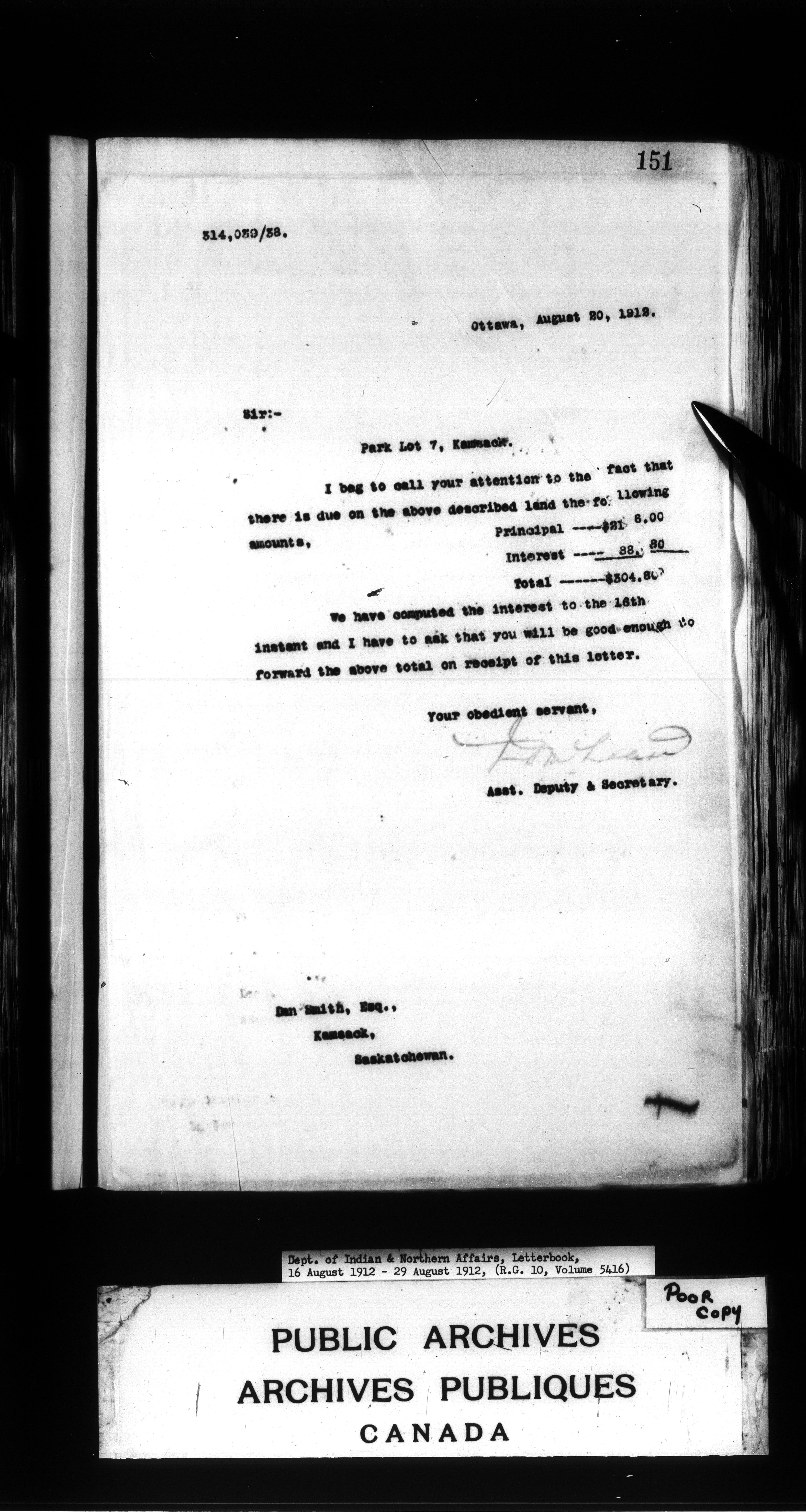 Department of Indian Affairs : Letterbooks of out-going correspondence relating to the administration of Indian Affairs in both eastern and western Canada, 1871-1920 - 8847