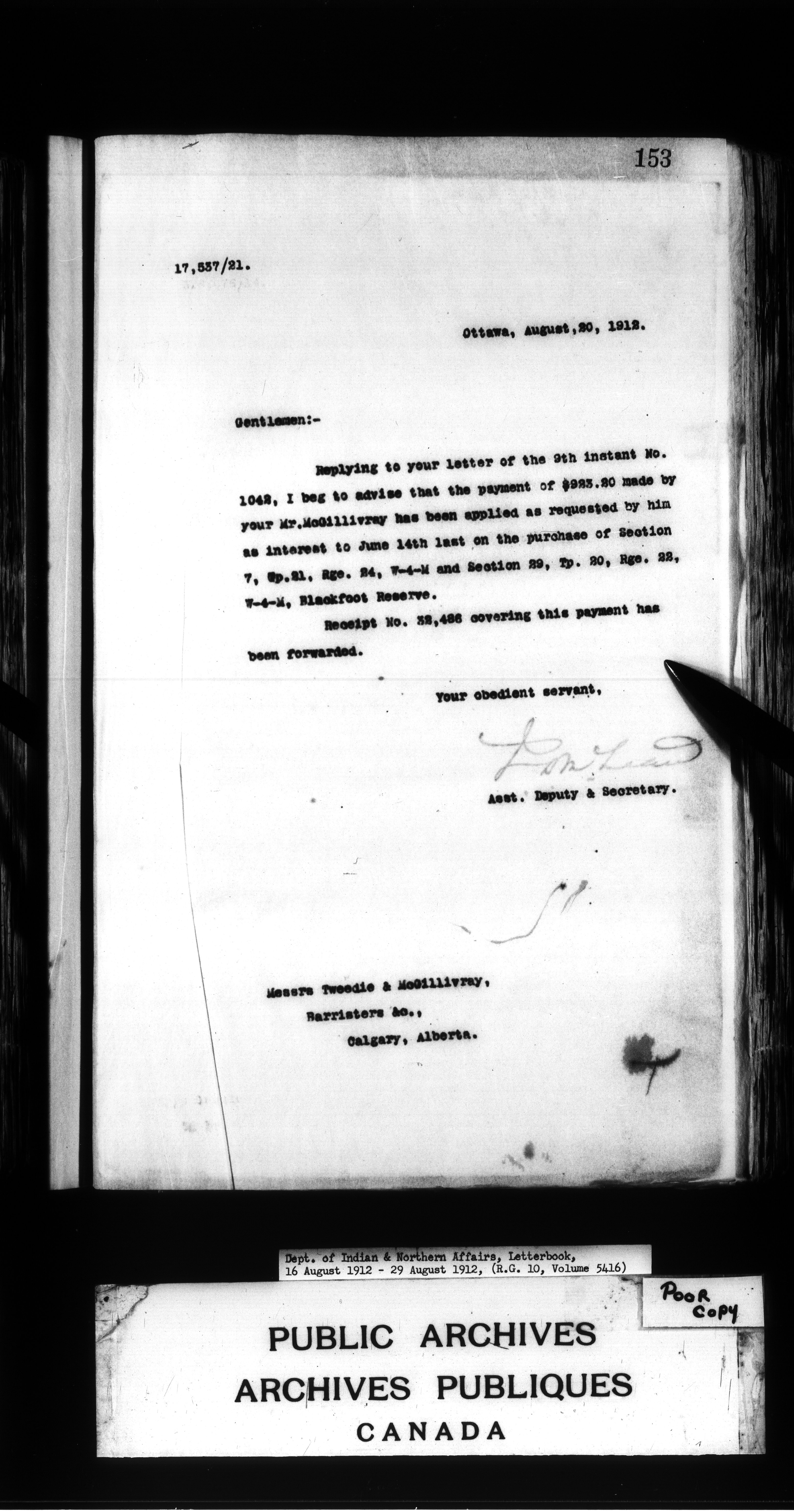 Department of Indian Affairs : Letterbooks of out-going correspondence relating to the administration of Indian Affairs in both eastern and western Canada, 1871-1920 - 8847