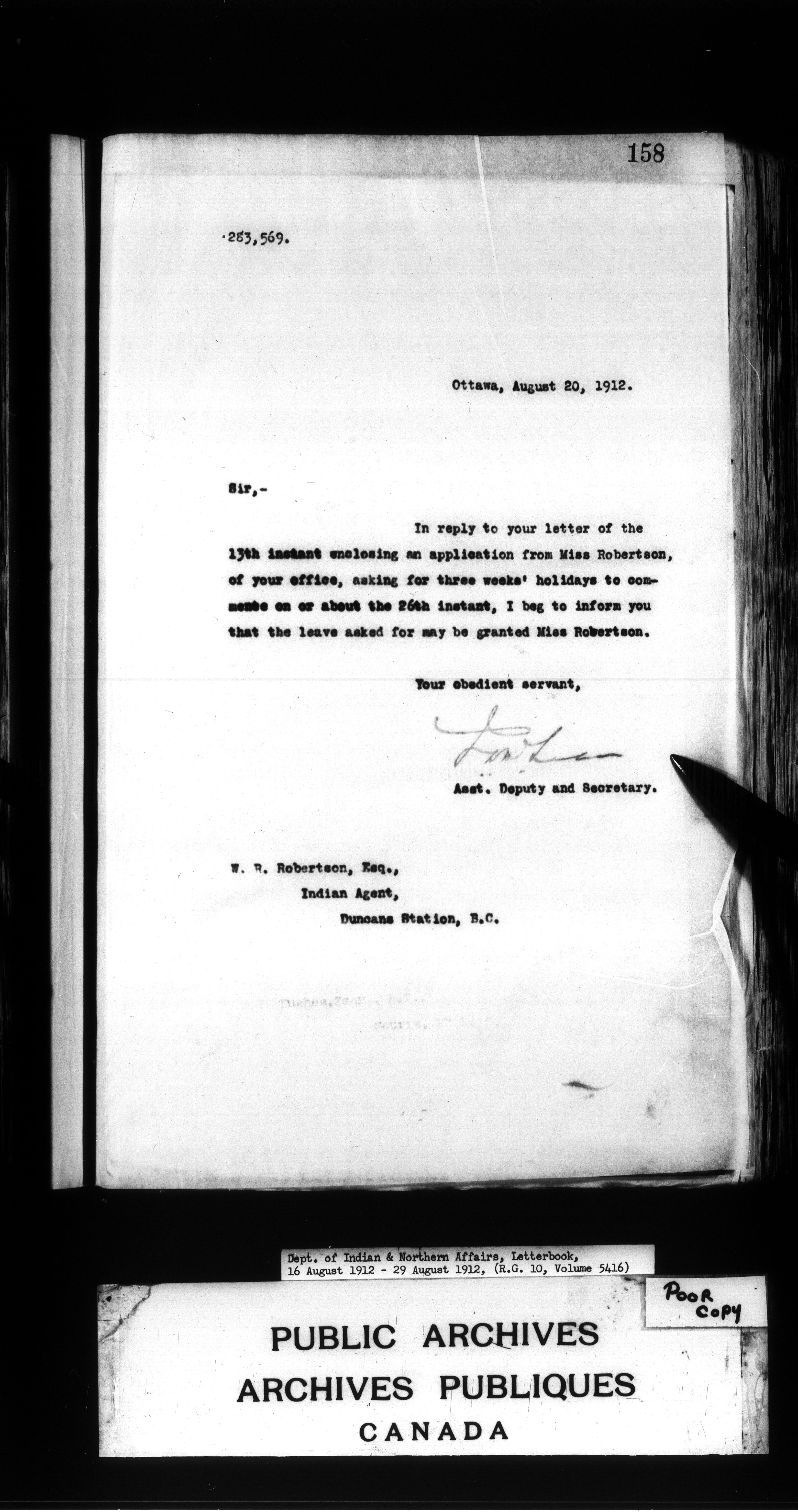 Department of Indian Affairs : Letterbooks of out-going correspondence relating to the administration of Indian Affairs in both eastern and western Canada, 1871-1920 - 8847