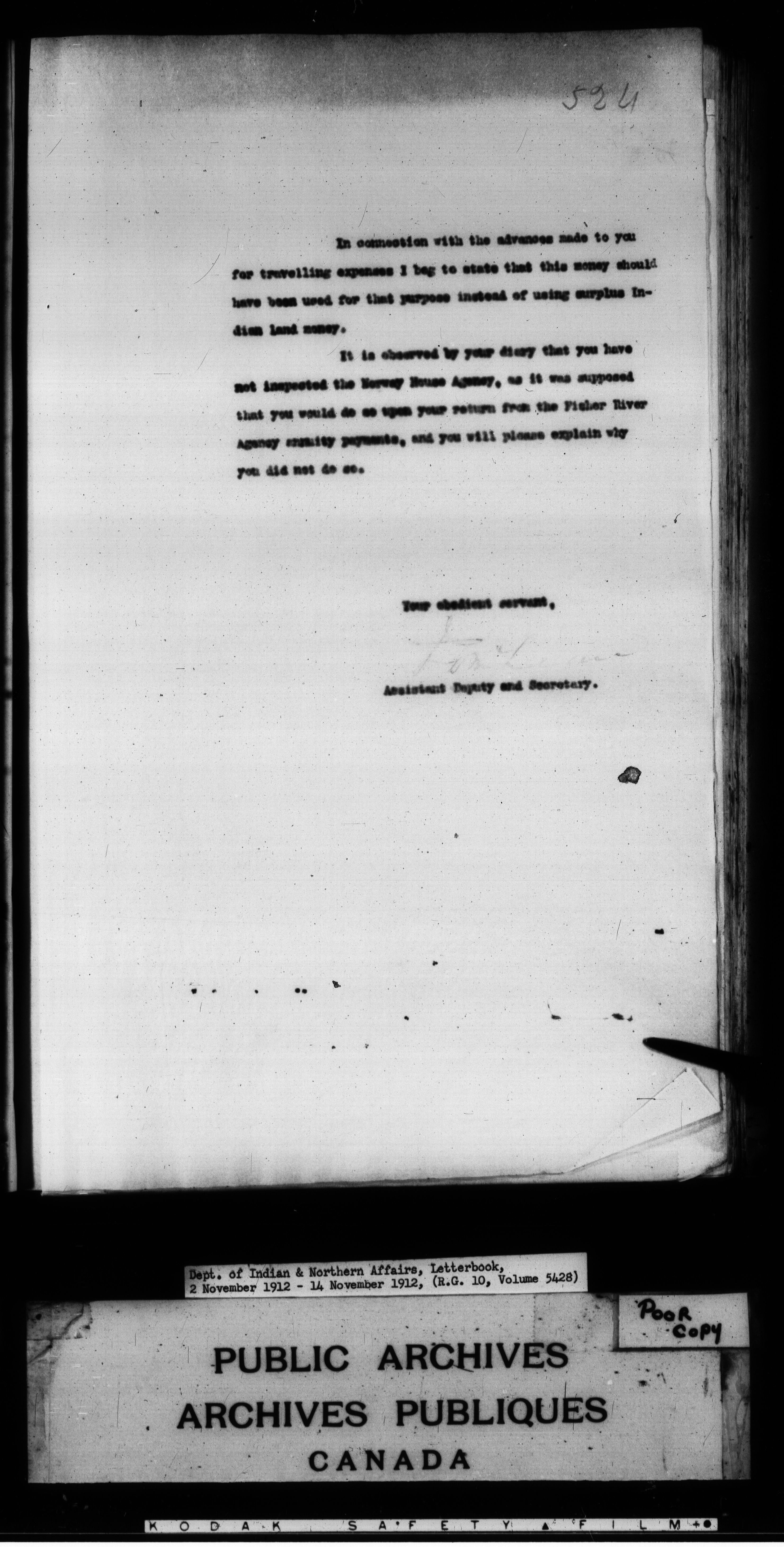 Department of Indian Affairs : Letterbooks of out-going correspondence relating to the administration of Indian Affairs in both eastern and western Canada, 1871-1920 - 8850