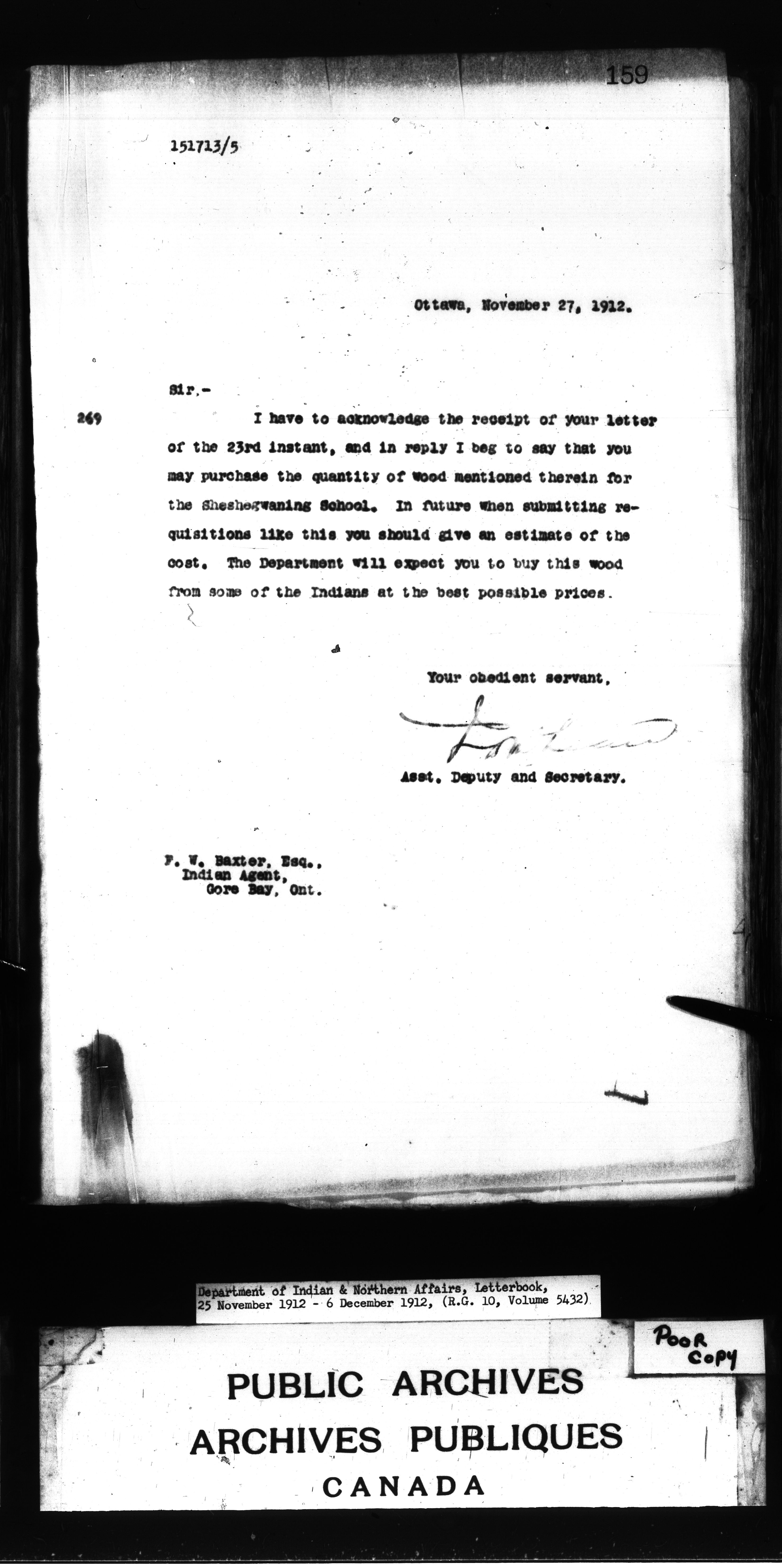 Department of Indian Affairs : Letterbooks of out-going correspondence relating to the administration of Indian Affairs in both eastern and western Canada, 1871-1920 - 8851