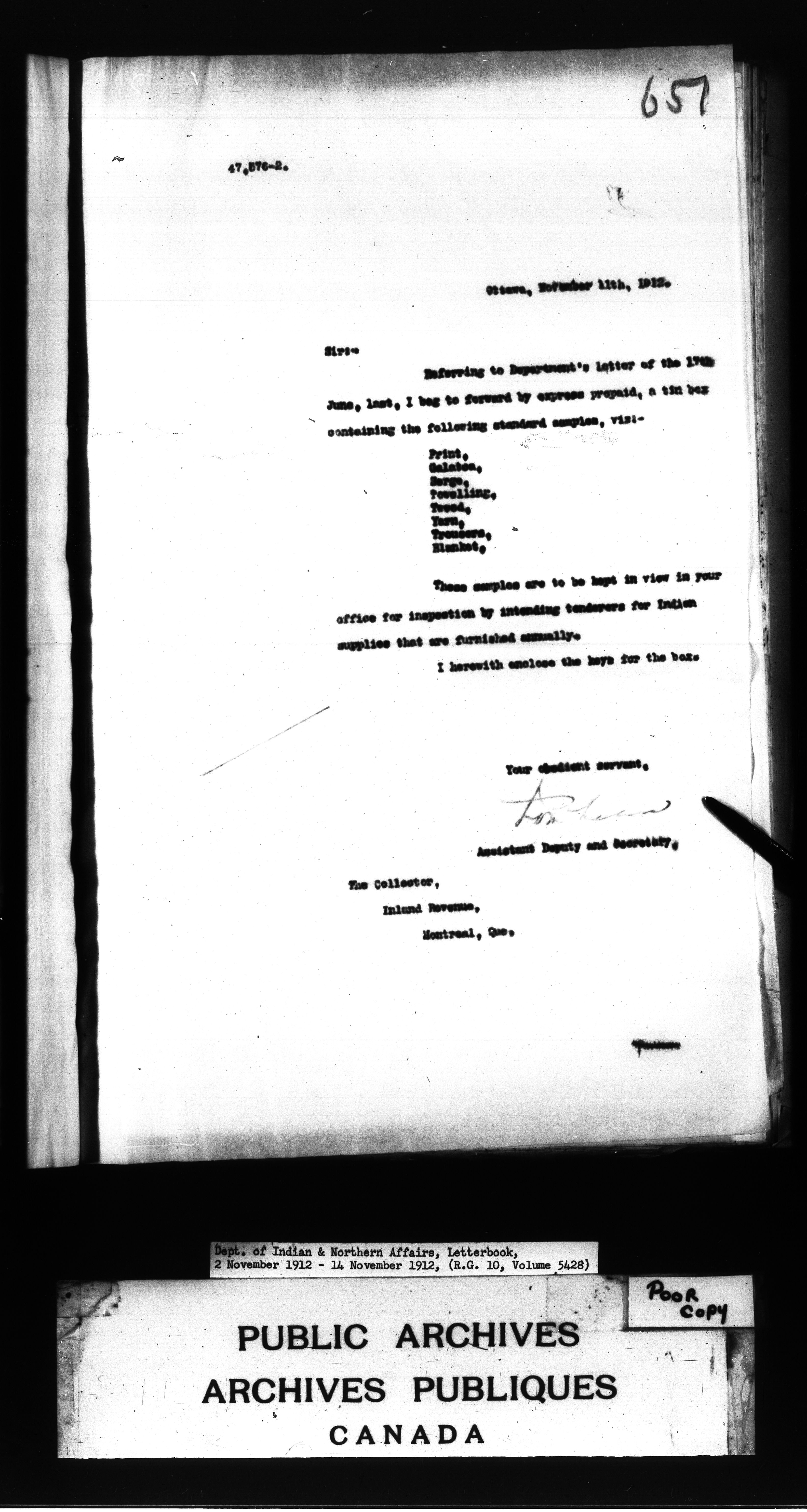 Department of Indian Affairs : Letterbooks of out-going correspondence relating to the administration of Indian Affairs in both eastern and western Canada, 1871-1920 - 8851